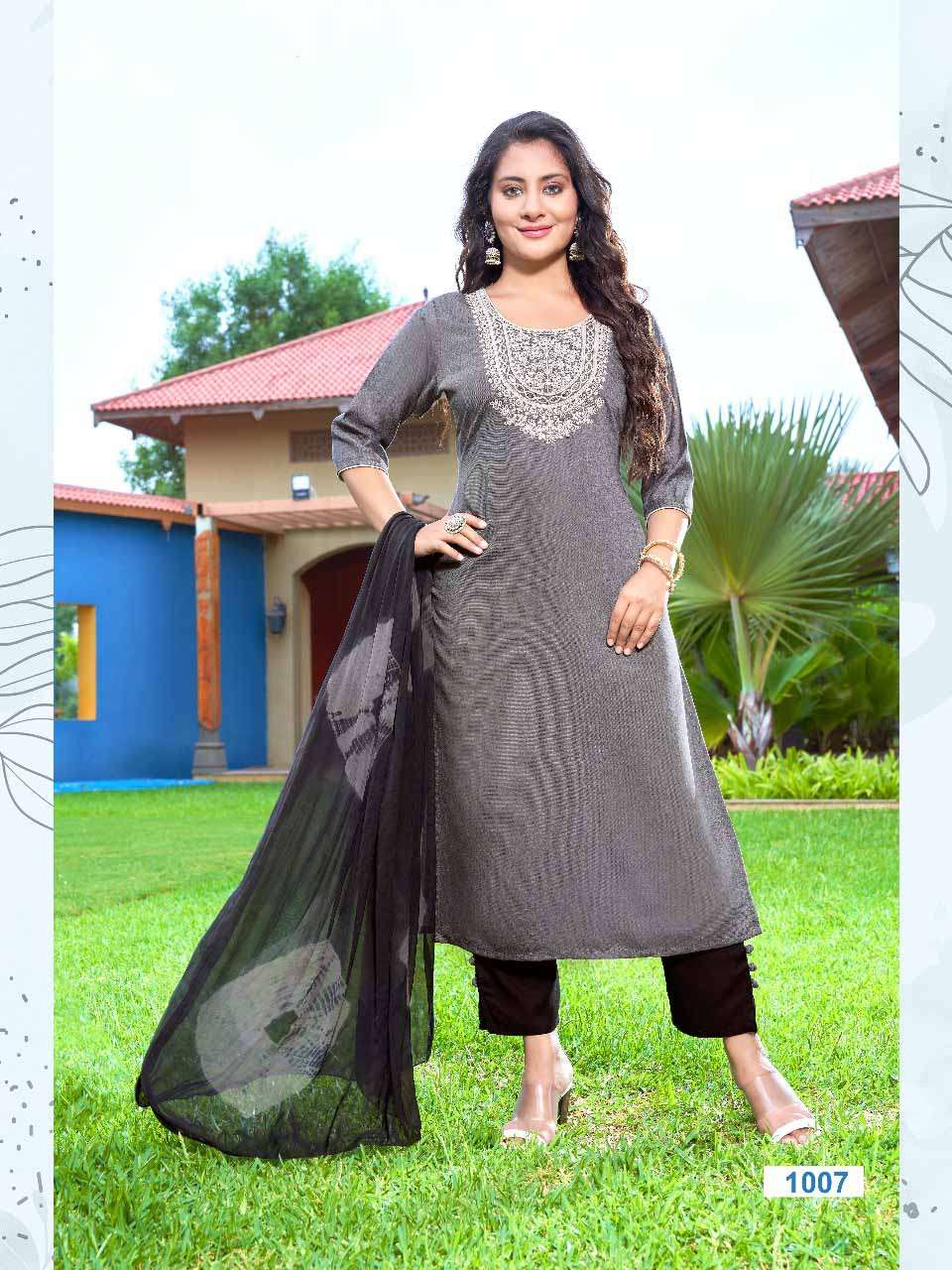 Product Name - satarangi vol 1 passion tree by krisha creation straight cut embroidery kurti pant dupatta set