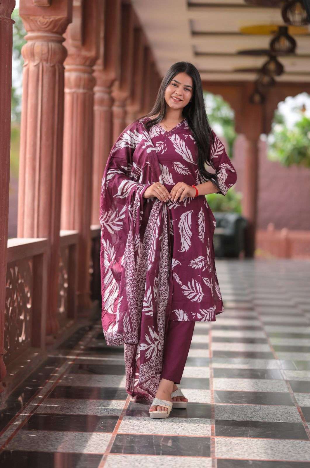 Product Name - safarnama vol 8 kailee by krisha creation cotton schiffli handwork fancy kurti pant with dupatta set