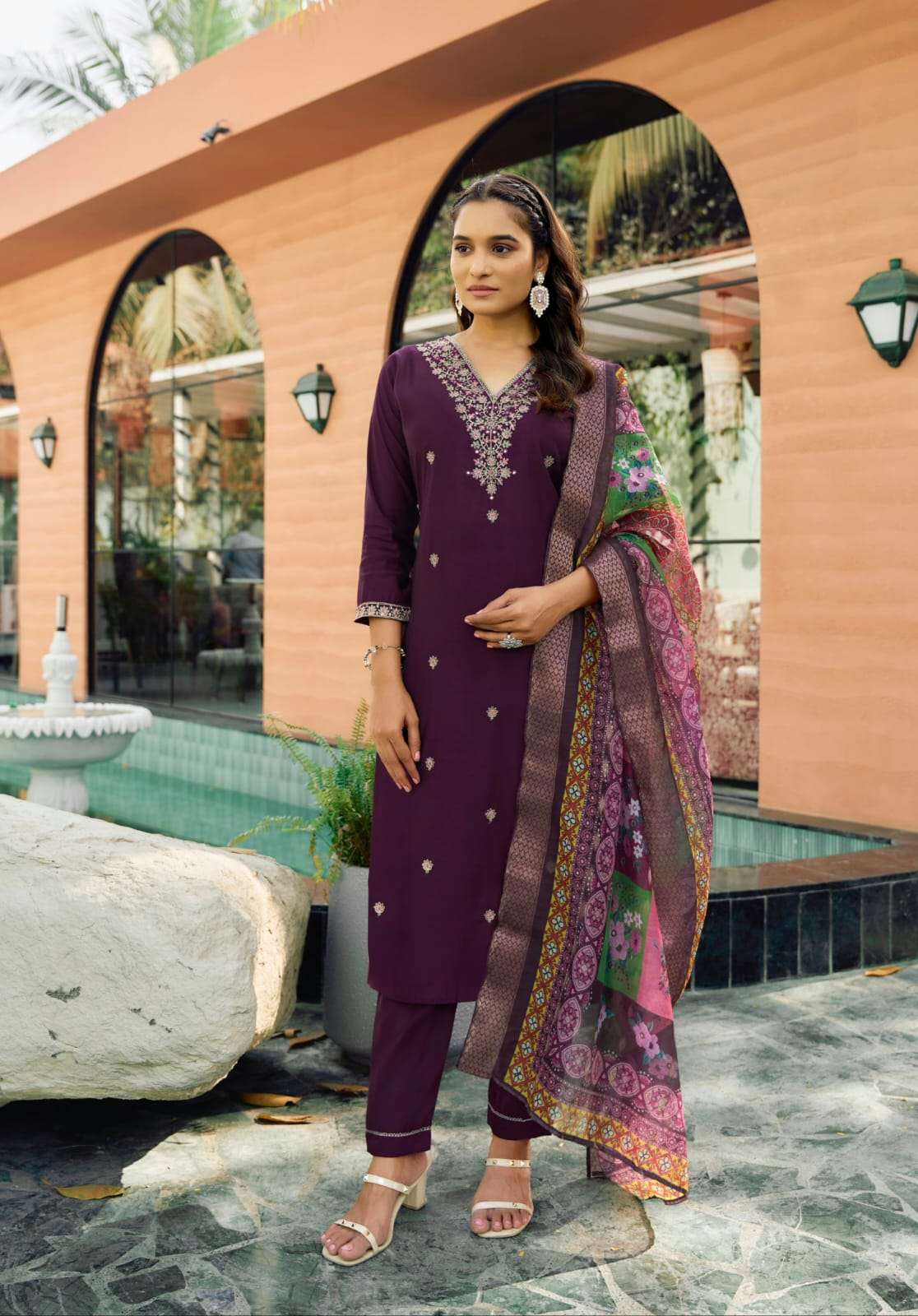 | TOP : | premium roman silk heavy embroidery with astar and pant pocket |