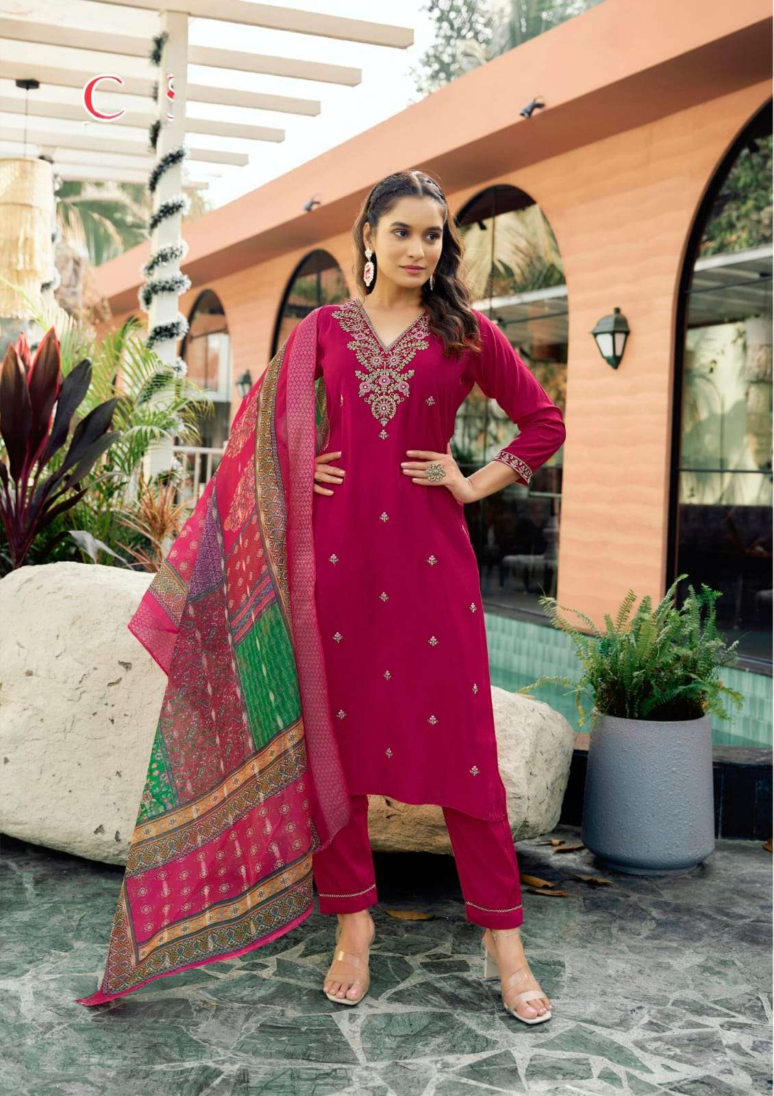 Product Name - anokhi rangoon by krisha creation viscose with embroidery & khatli handwork top with pant dupatta