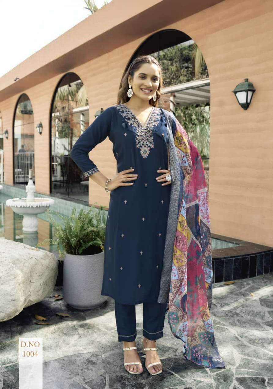 Product Name - satarangi vol 1 passion tree by krisha creation straight cut embroidery kurti pant dupatta set