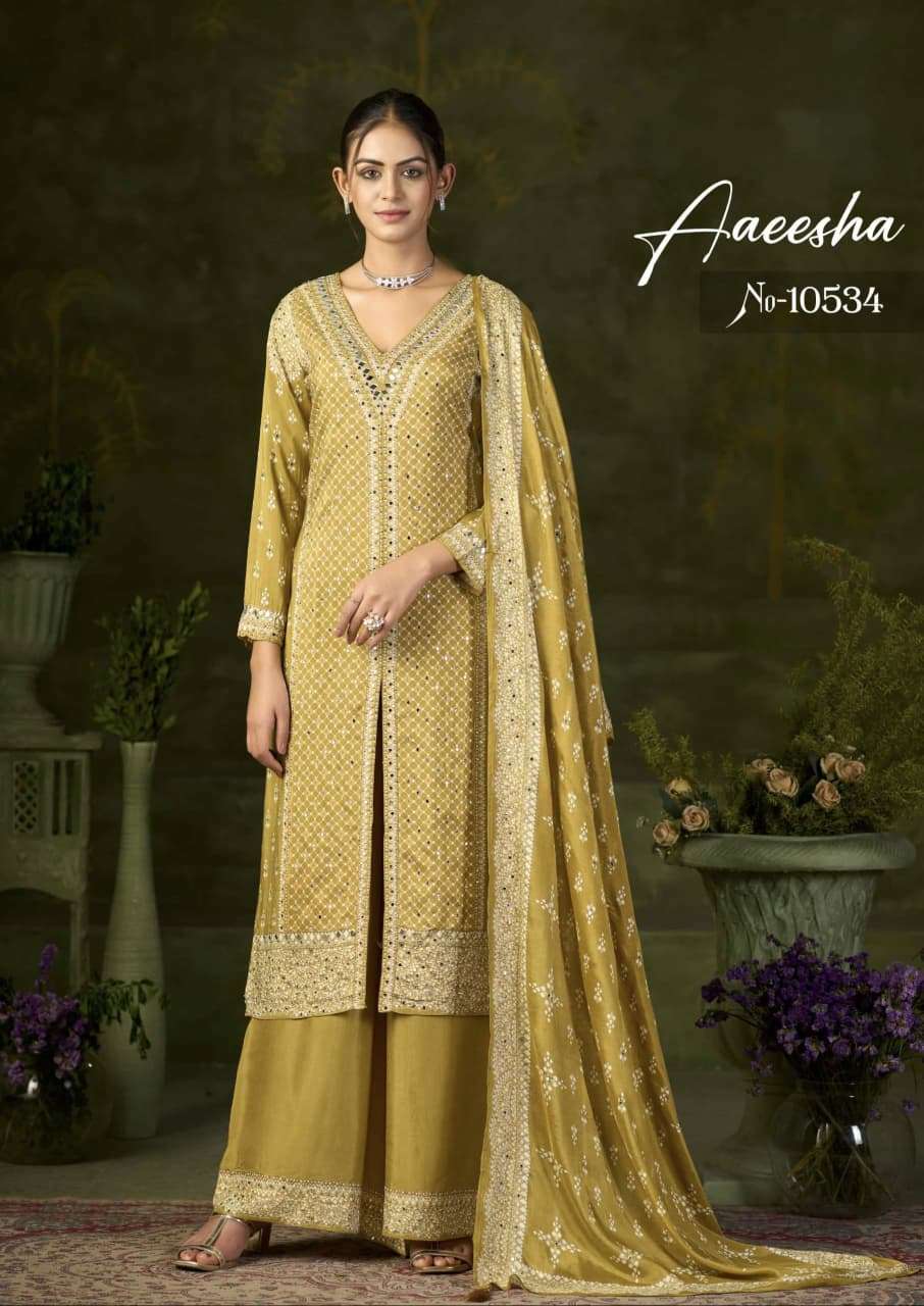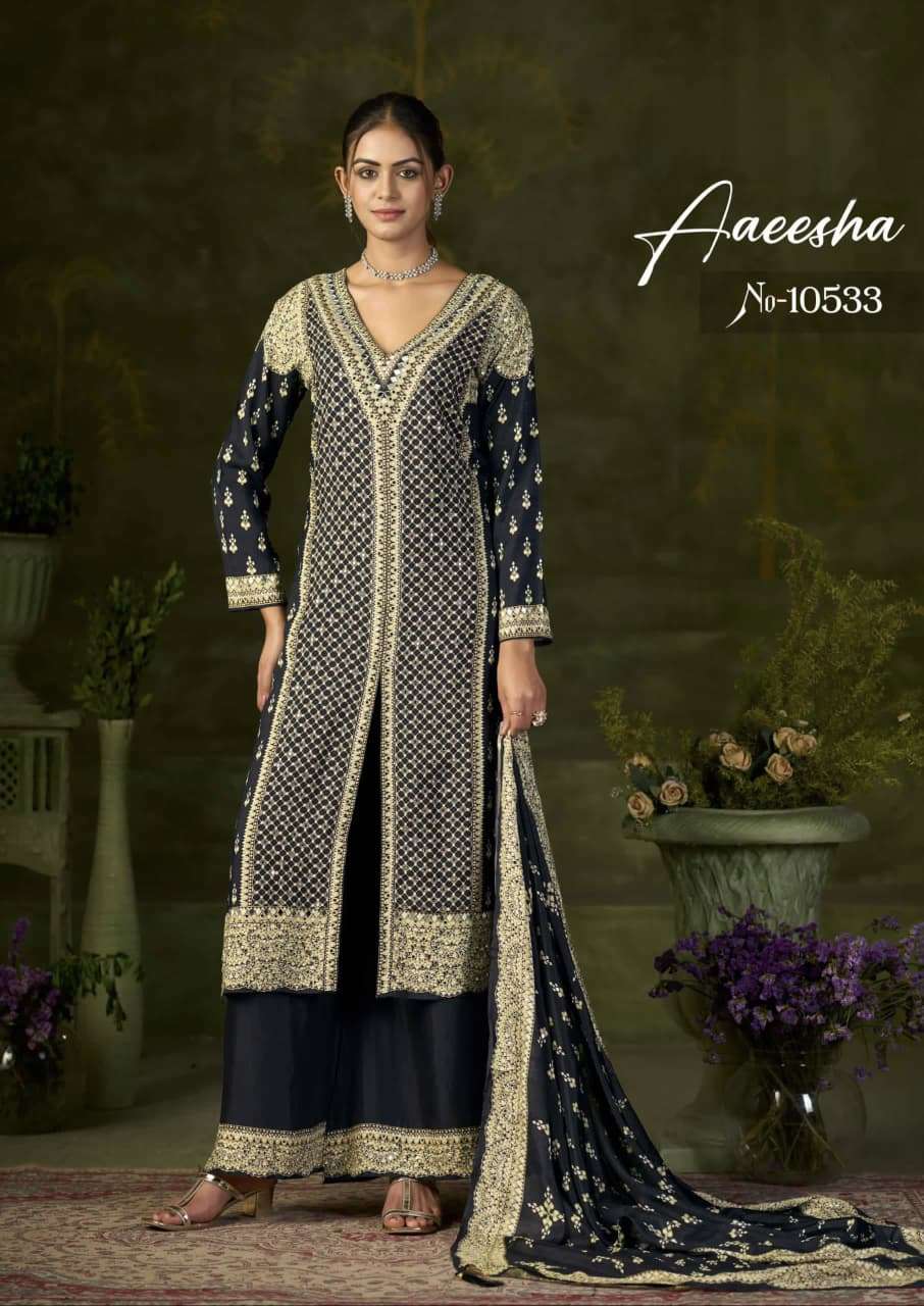 Product Name - Manjari Vol 2 Rangoon Chiffon Fancy Work Kurti Sharara Dupatta Set Krisha Creation Surat Wholesale