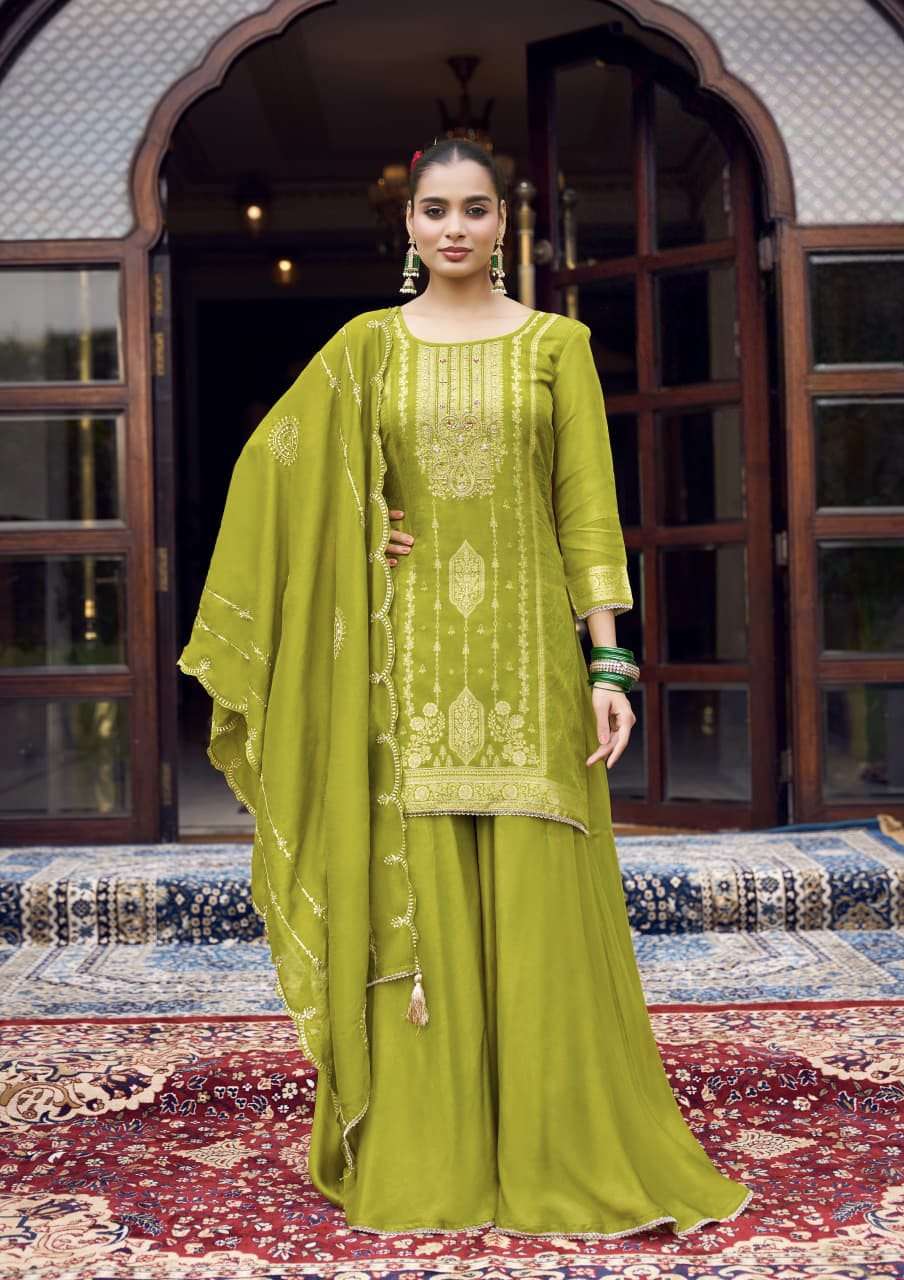 Product Name - Rangoon ketki vol 2 chinon with fancy code & mirror work on top with palazzo and dupatta