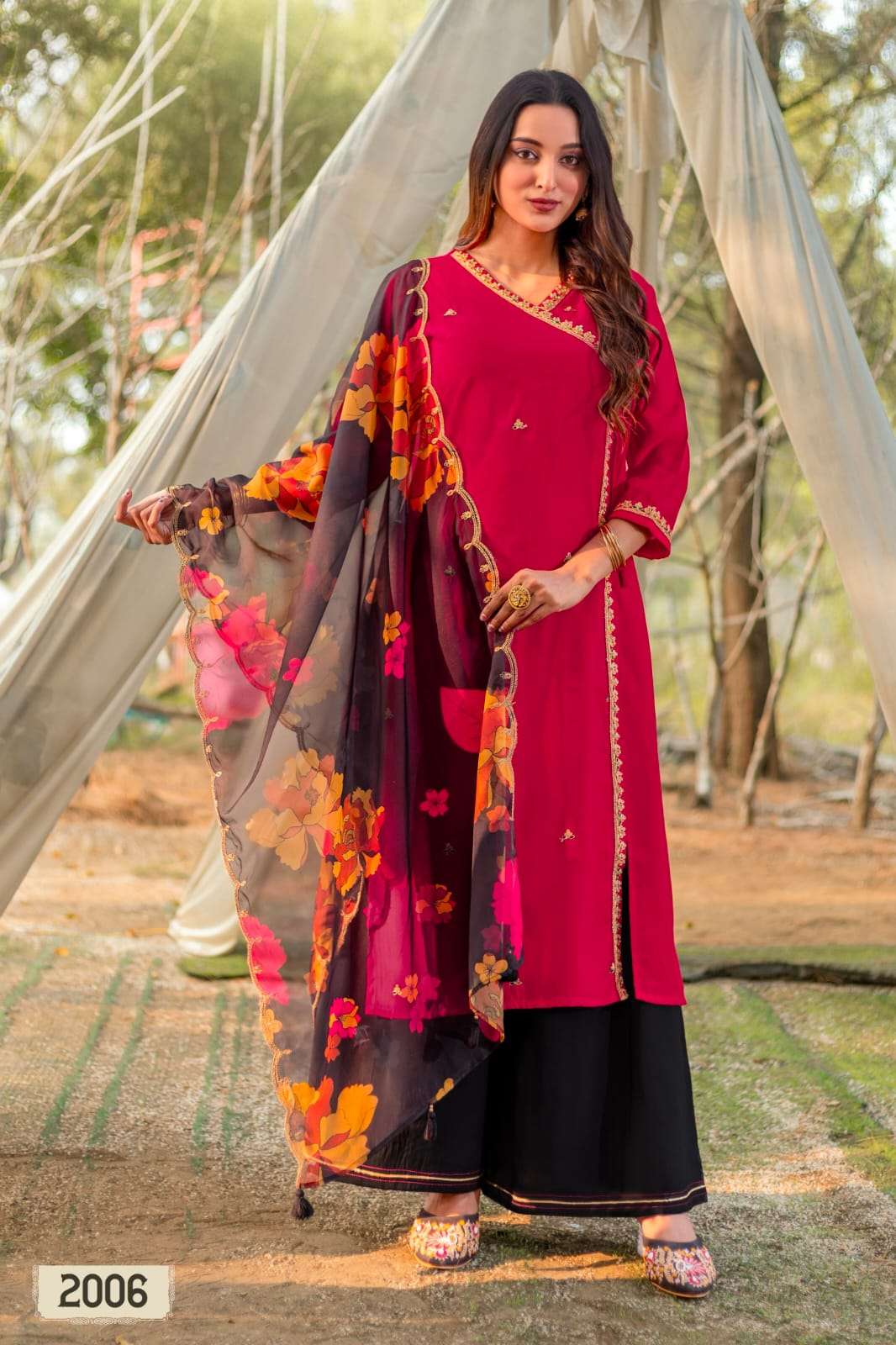 Product Name - anokhi rangoon by krisha creation viscose with embroidery & khatli handwork top with pant dupatta