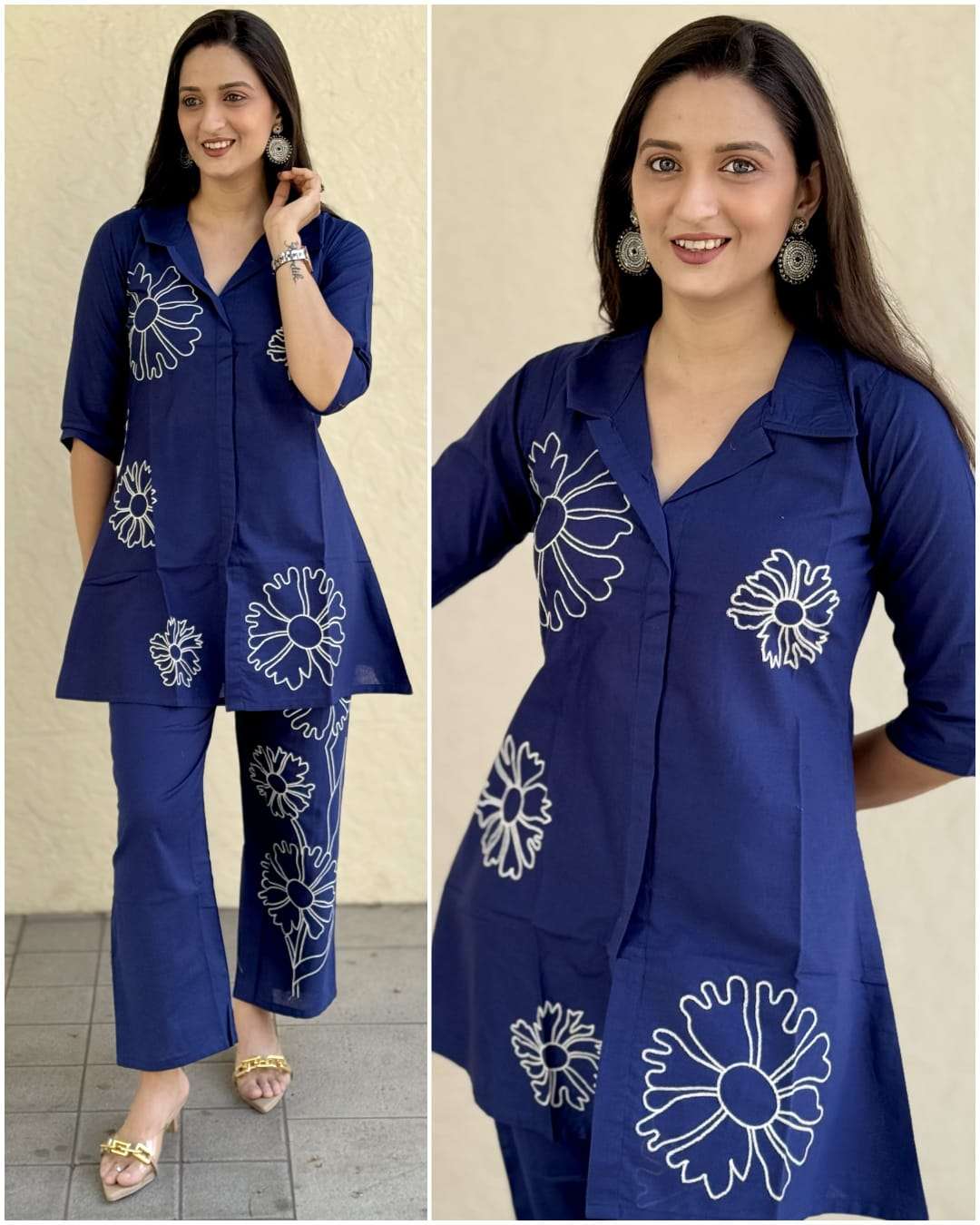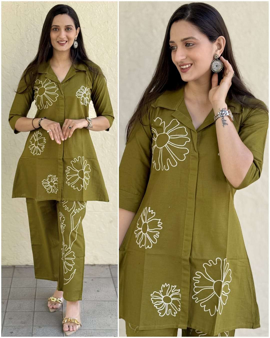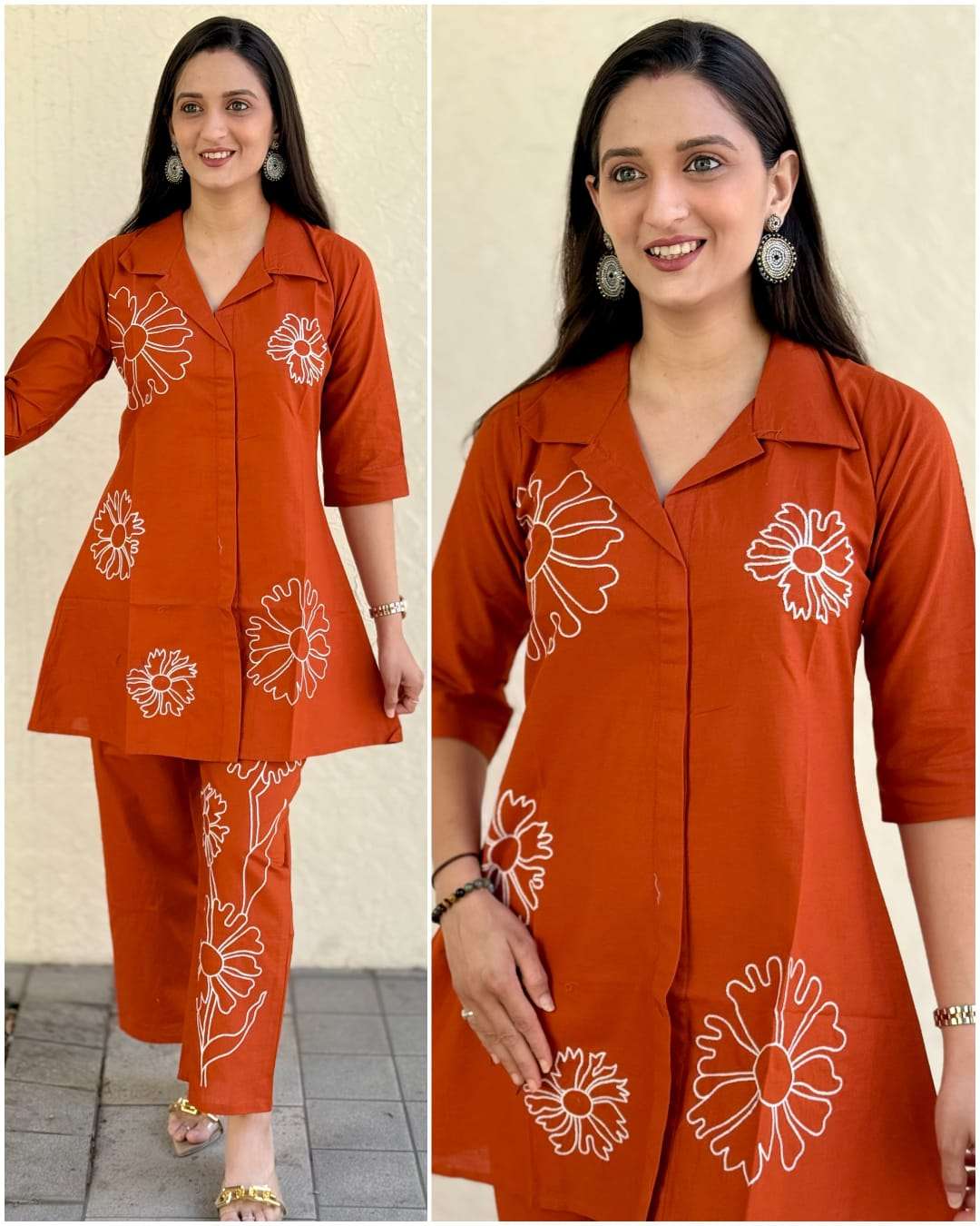 Product Name - rina by krisha creation dhabu cotton V Neck Style embroidery cord sets for daily wear