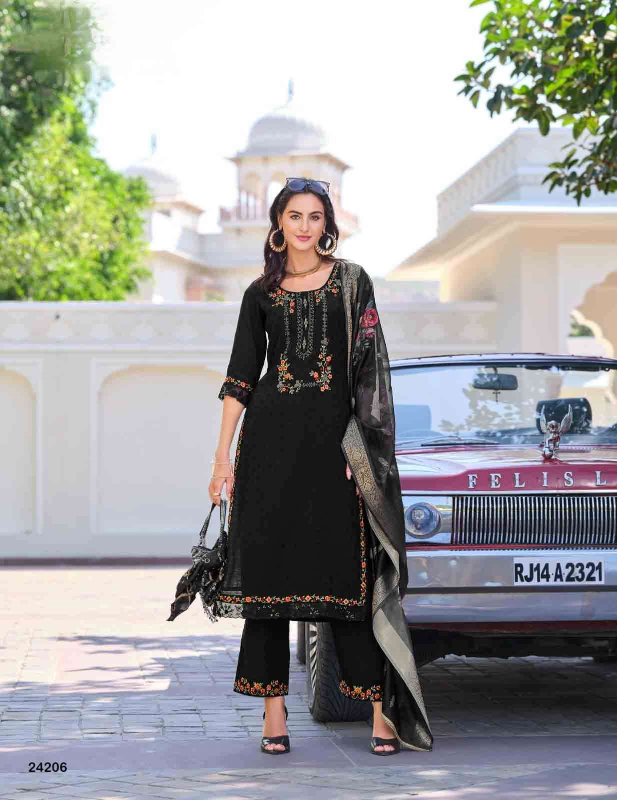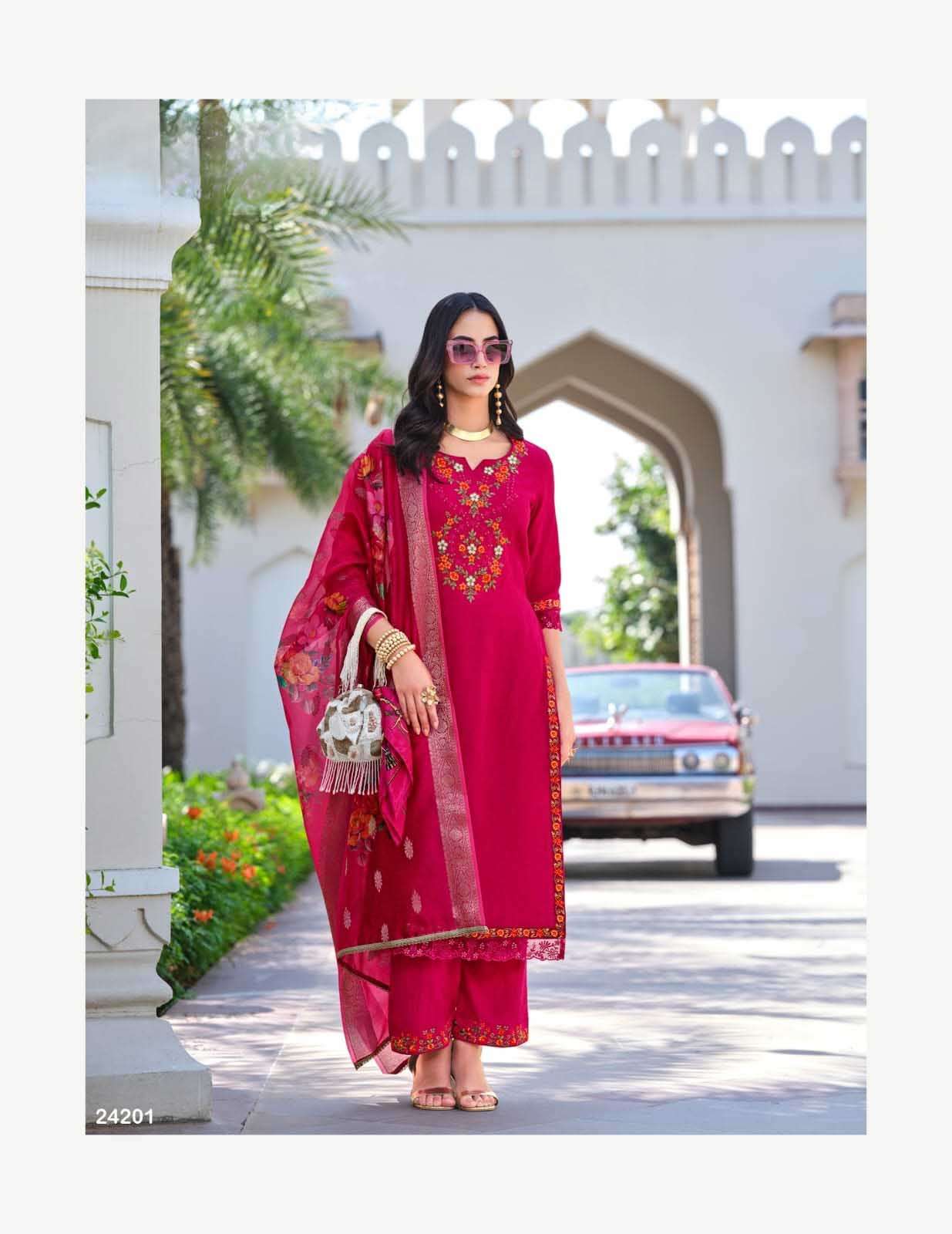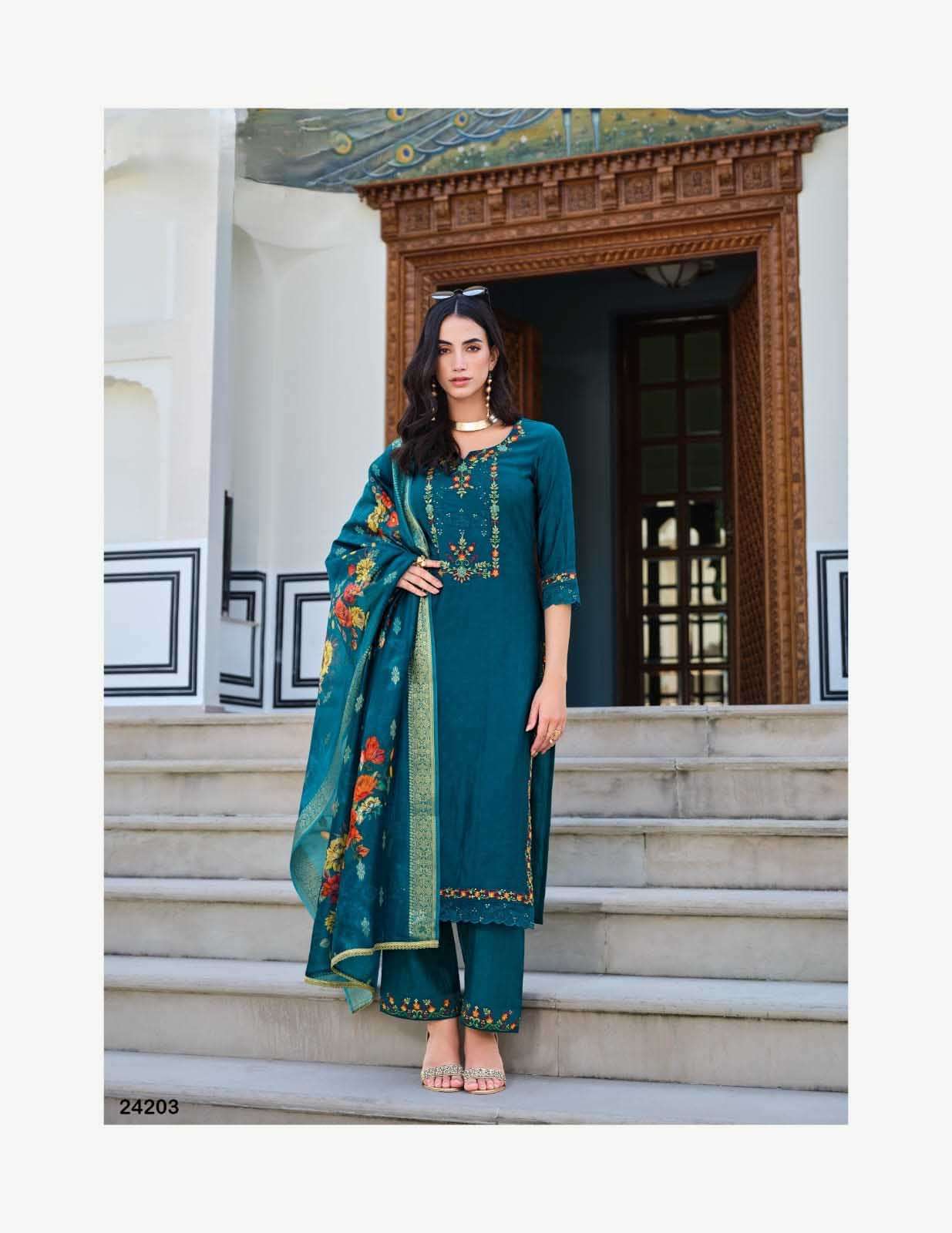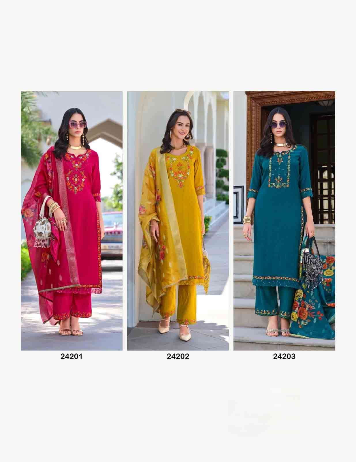Product Name - satarangi vol 1 passion tree by krisha creation straight cut embroidery kurti pant dupatta set