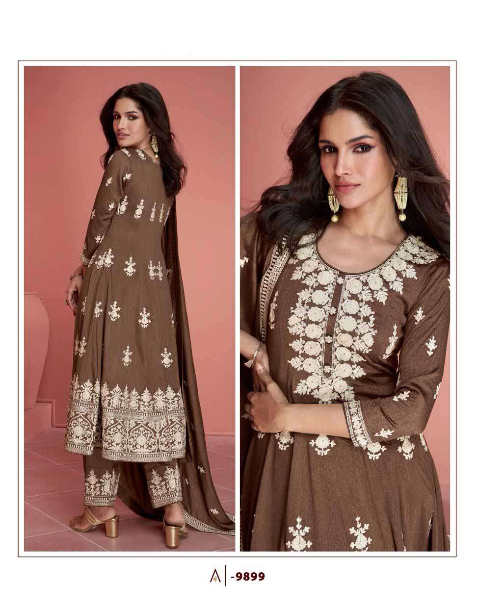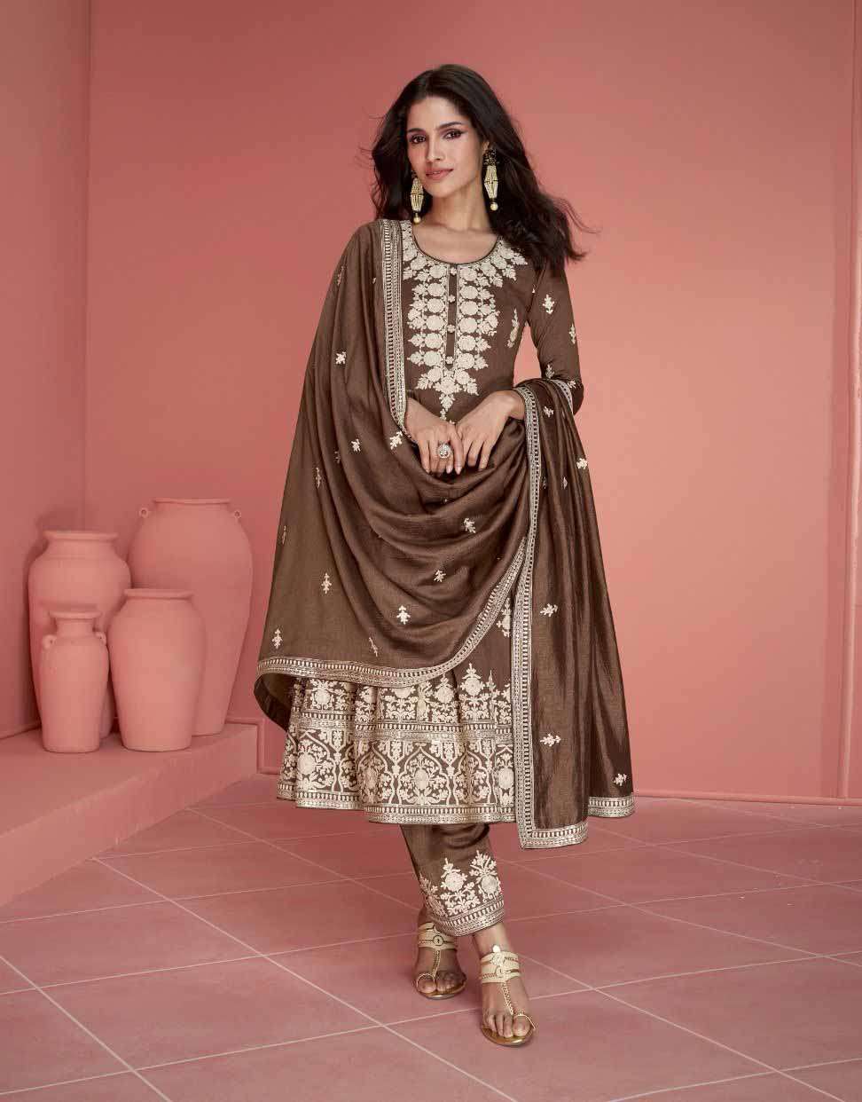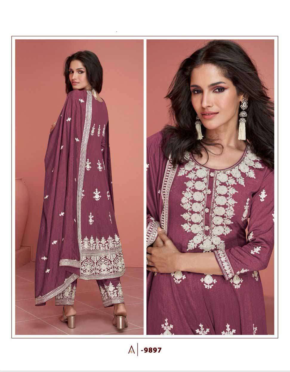 Product Name - sakhi gulkayra real simar silk with heavy embroidery work on Top with palazzo and dupatta