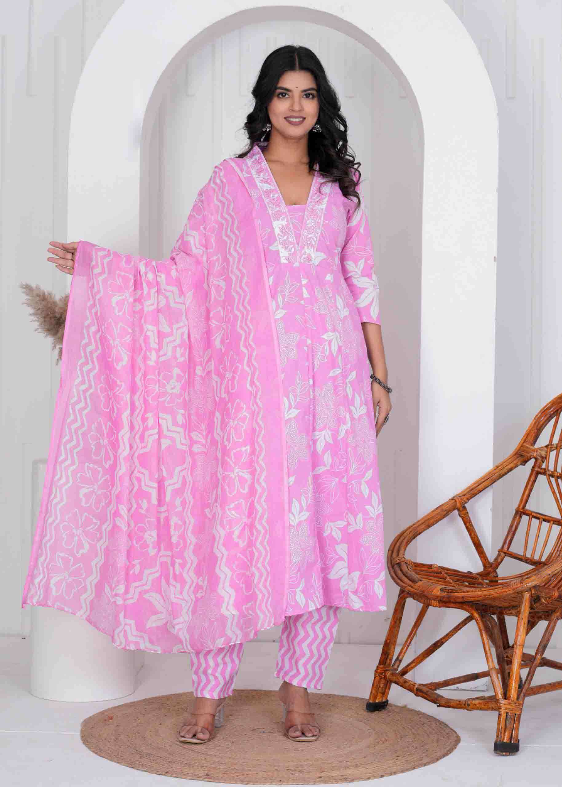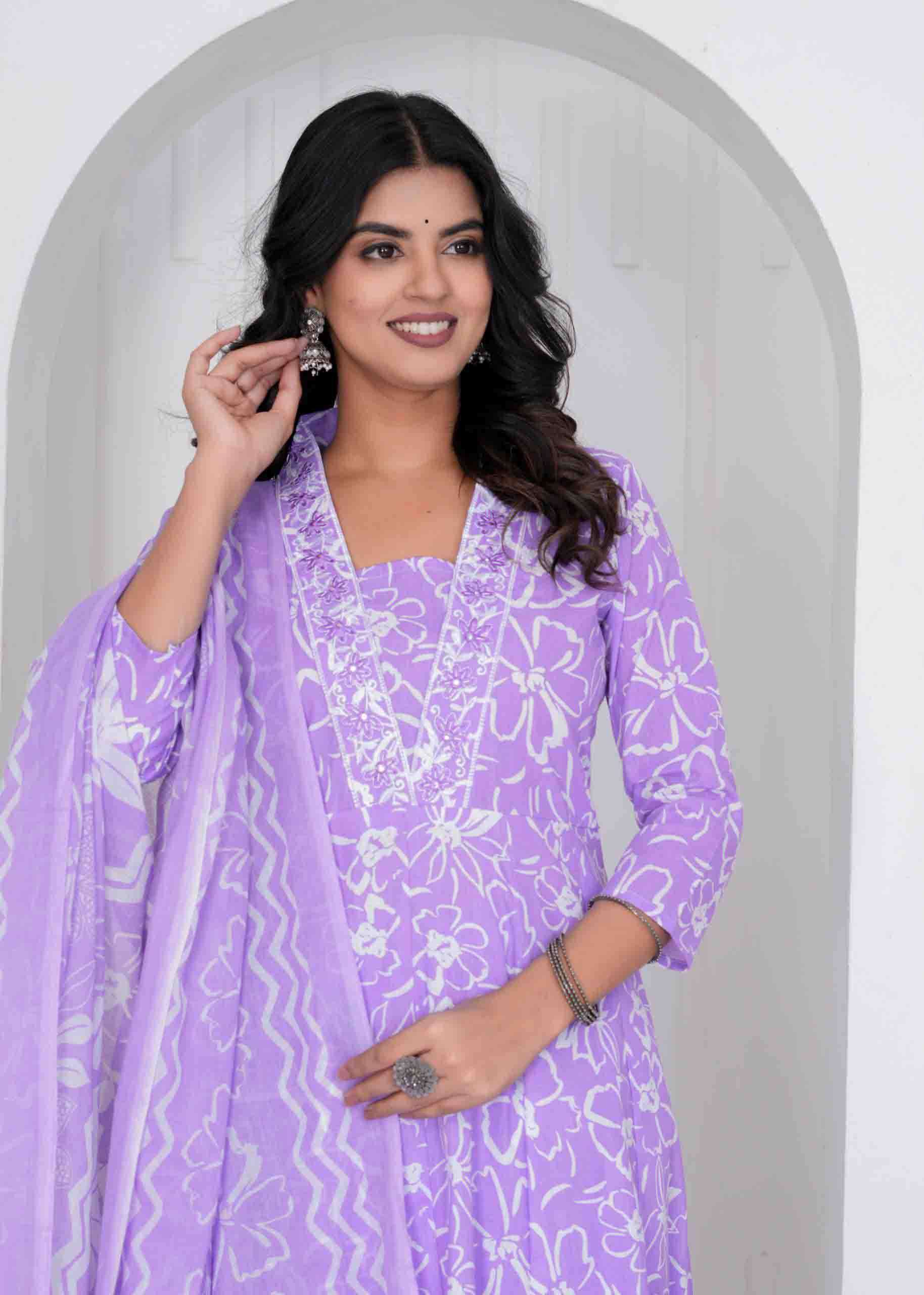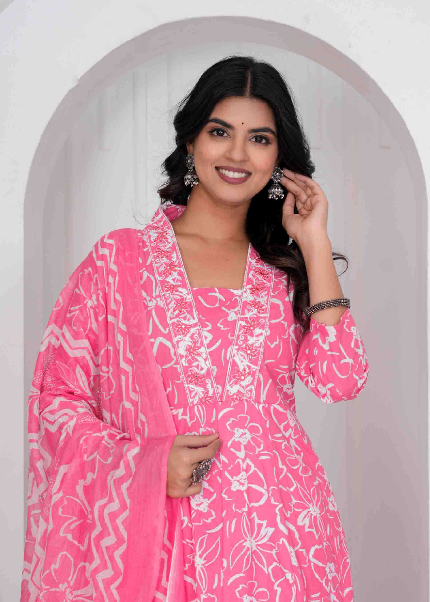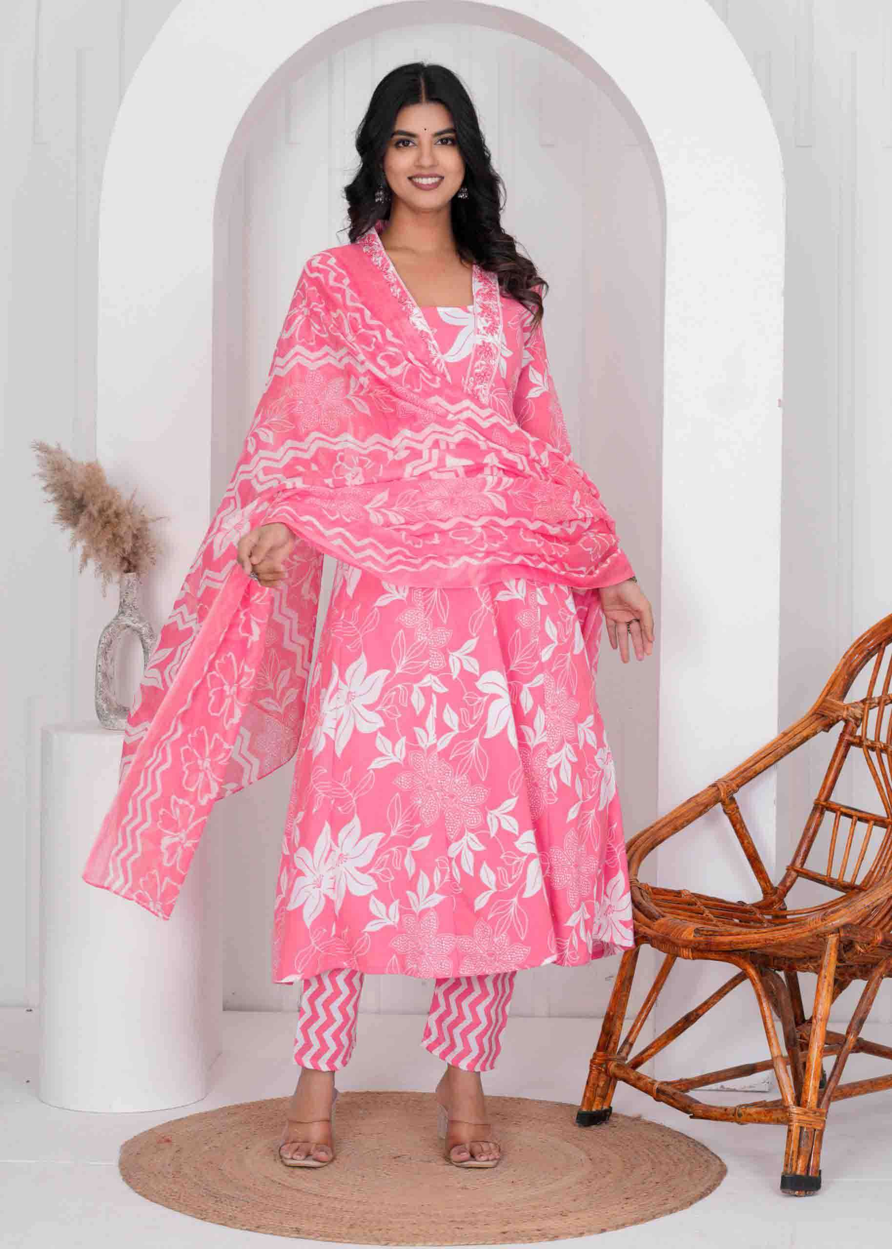 Cotton Print Anarkali 3 pc