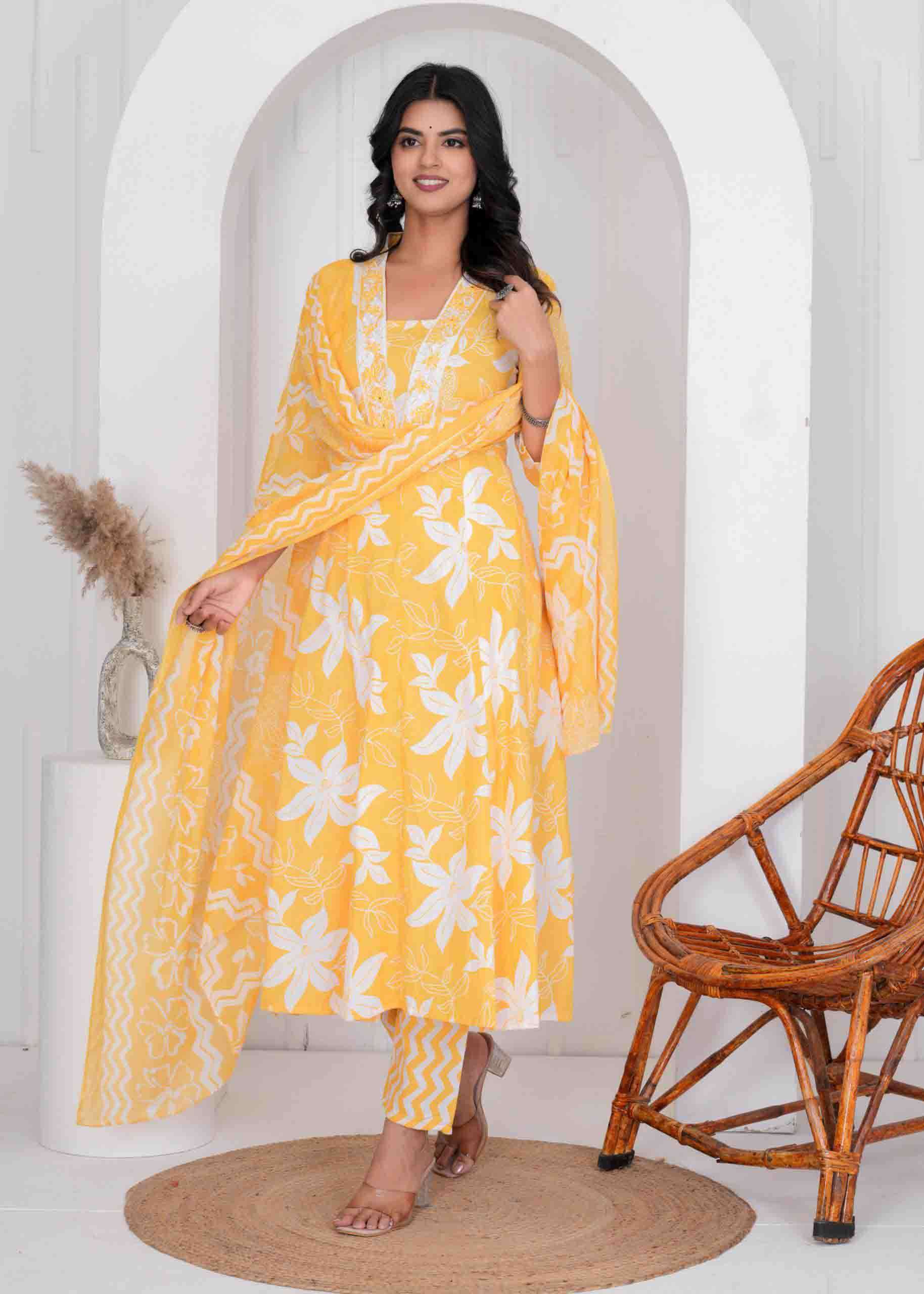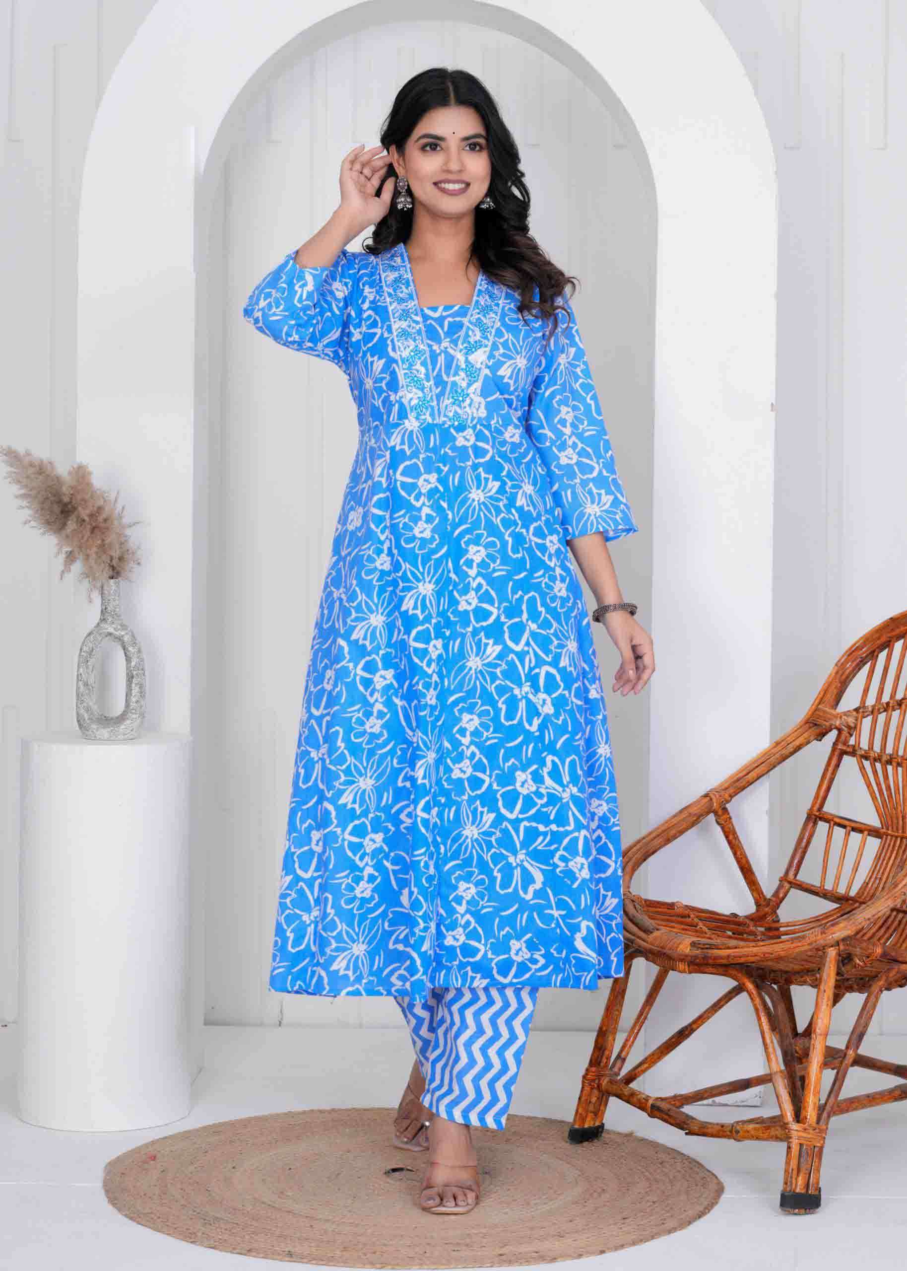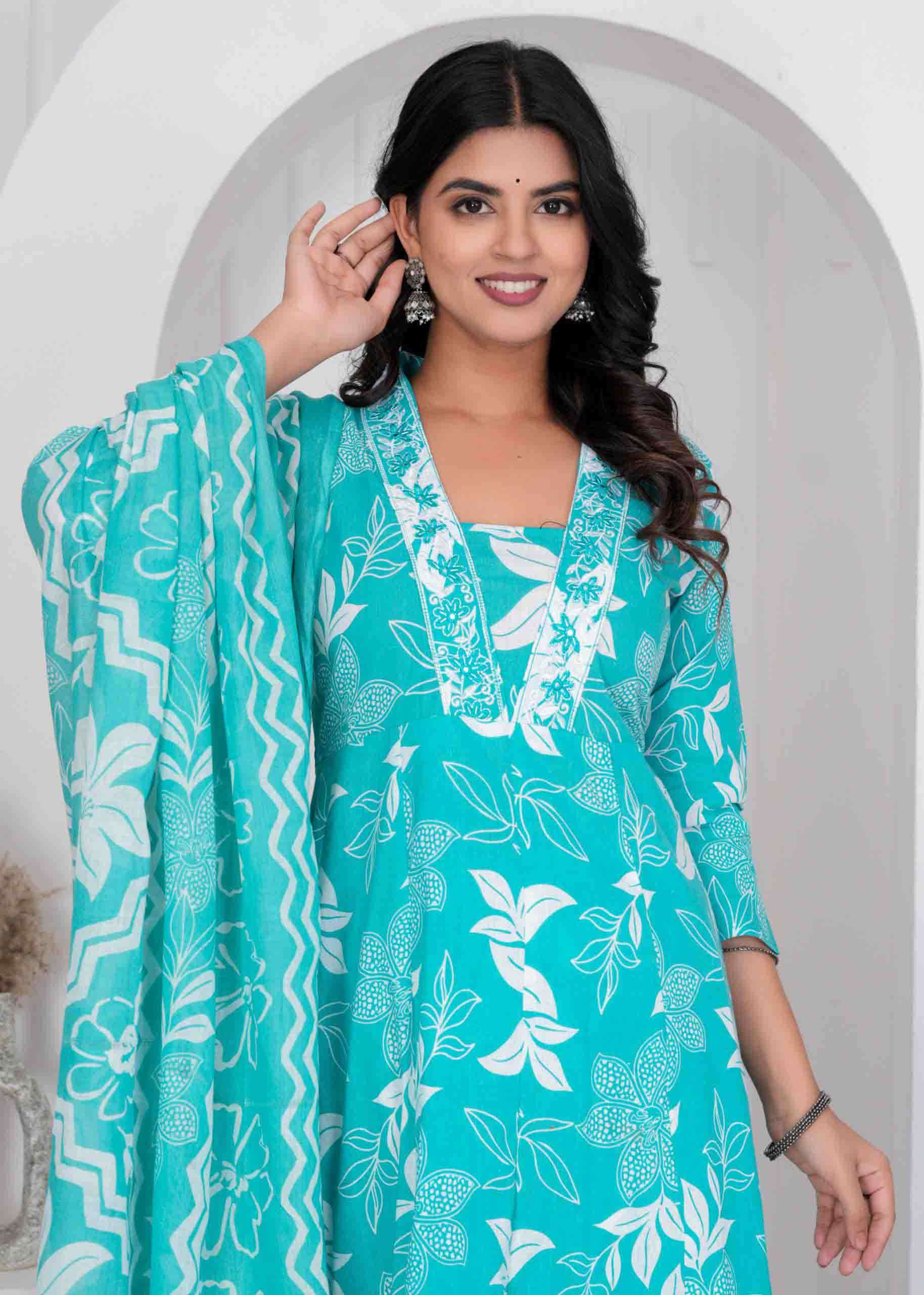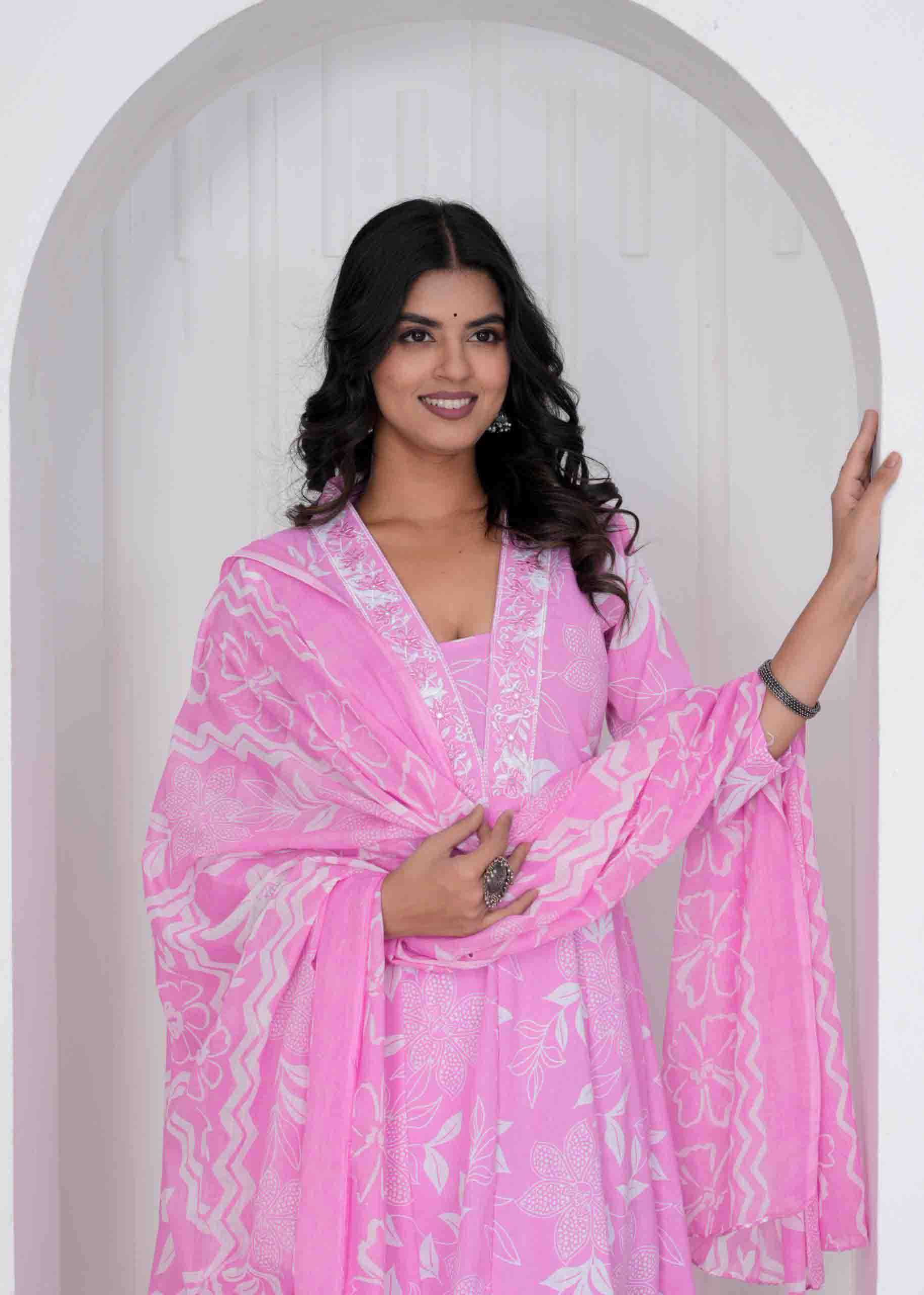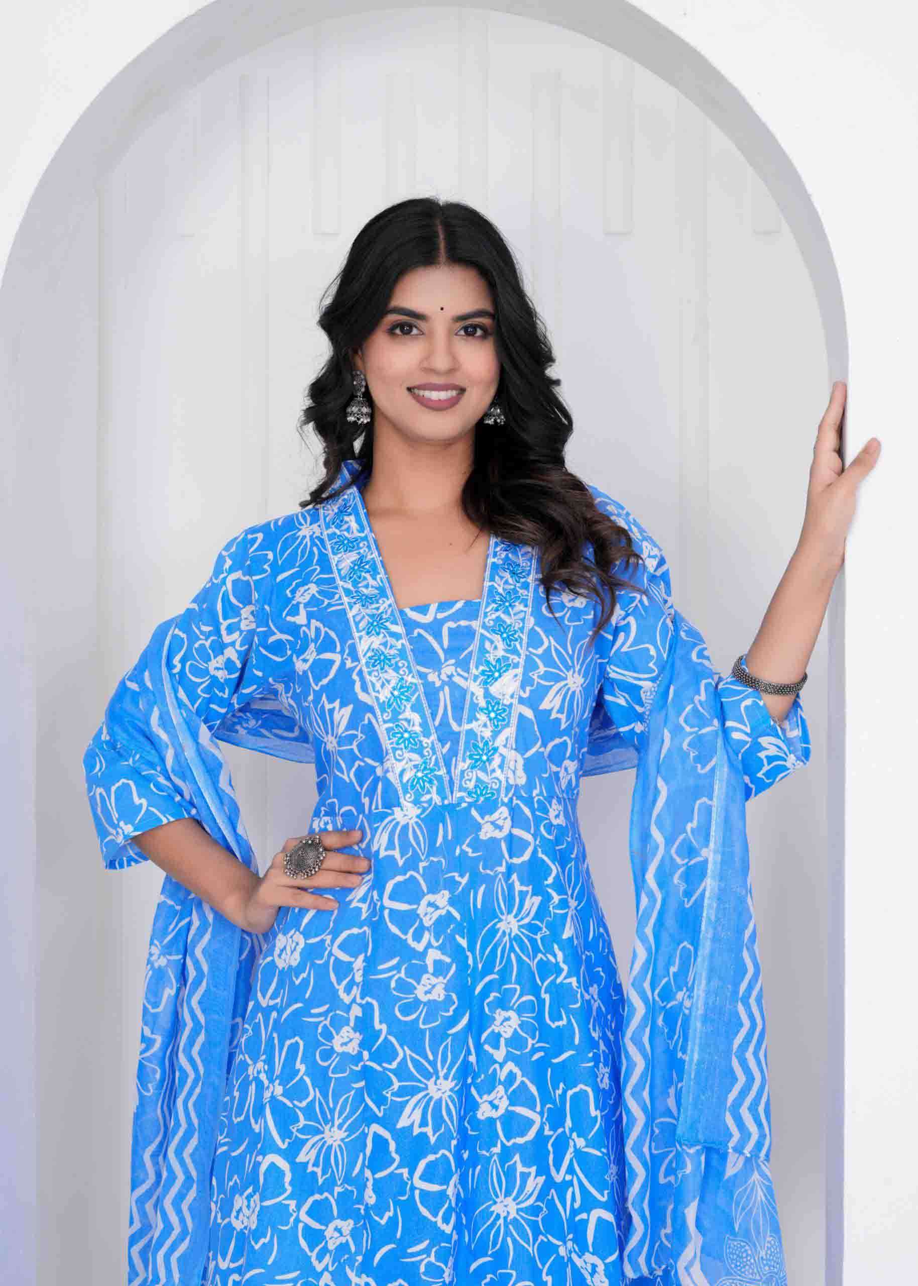 Cotton Print Anarkali 3 pc