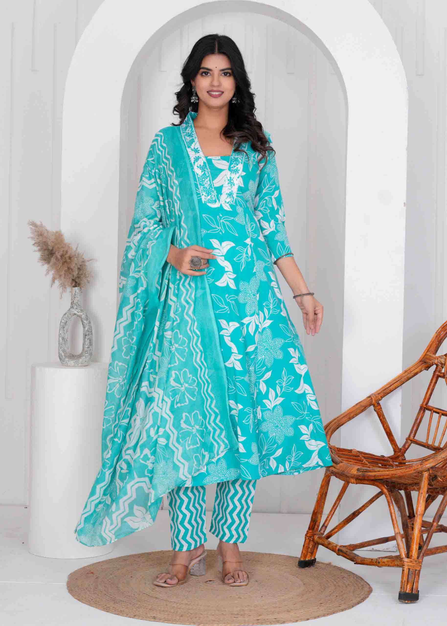| Type: | kurti combo set, anarkali style kurti pant dupatta set |