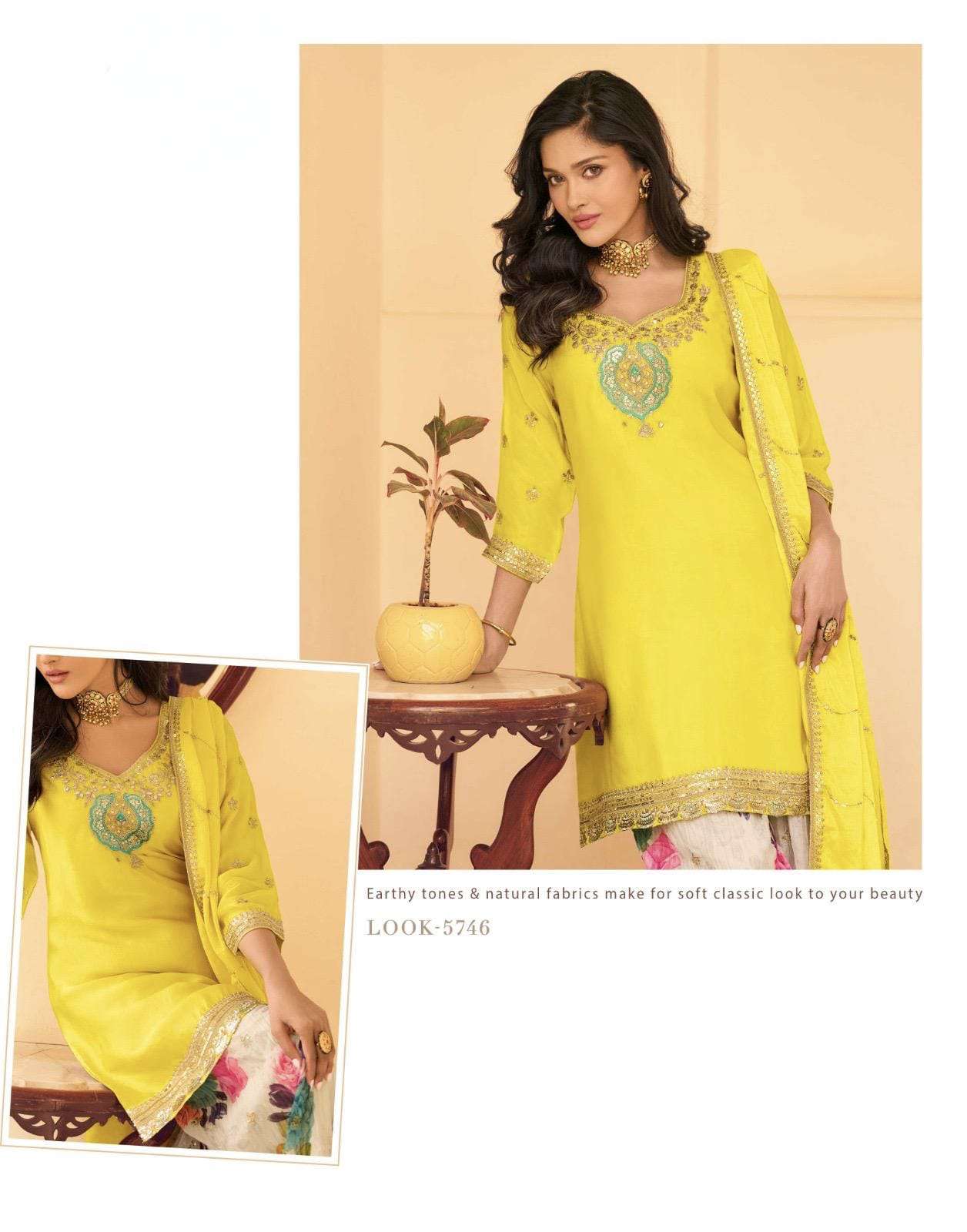| BOTTOM : | premium chinon silk with embroidery |