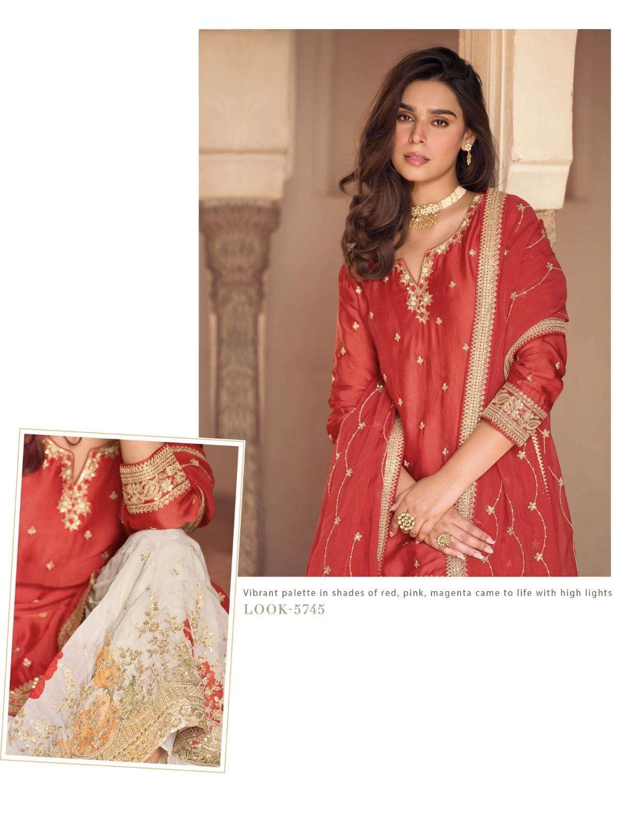Product Name - sakhi gulkayra real simar silk with heavy embroidery work on Top with palazzo and dupatta