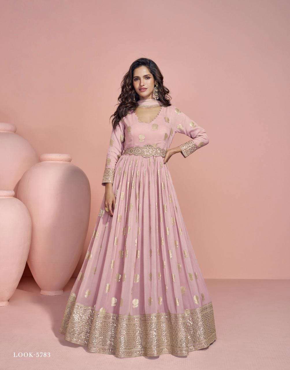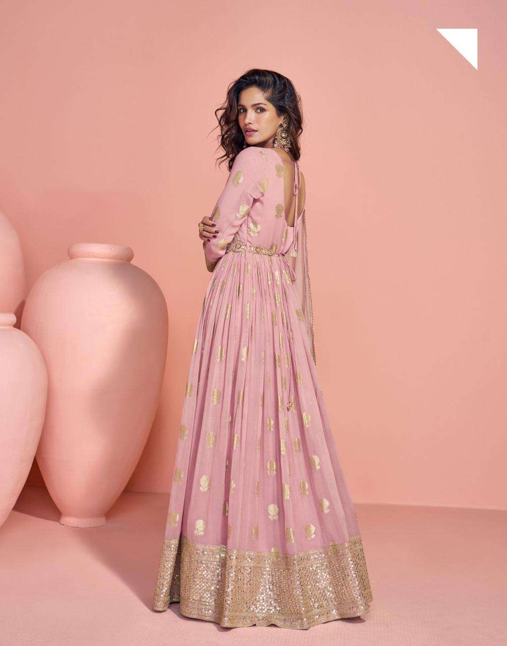 | TOP : | heavy festive look front and back embroidered viscos jacquard silk gown |