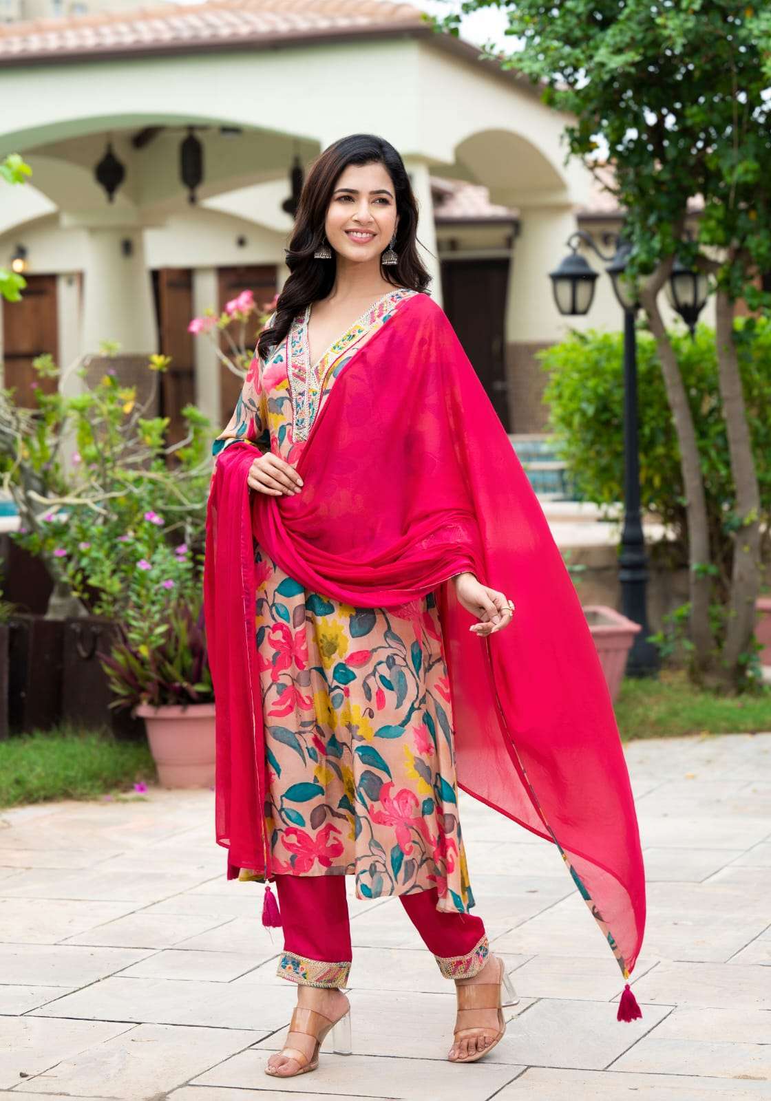 Product Name - kalini vol 1 radhika by krisha pure silk beads work kurti pant dupatta set
