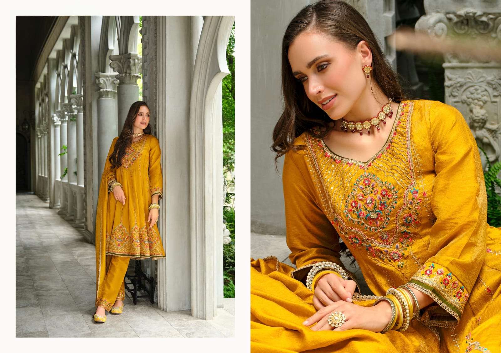 Product Name - kalini vol 1 radhika by krisha pure silk beads work kurti pant dupatta set