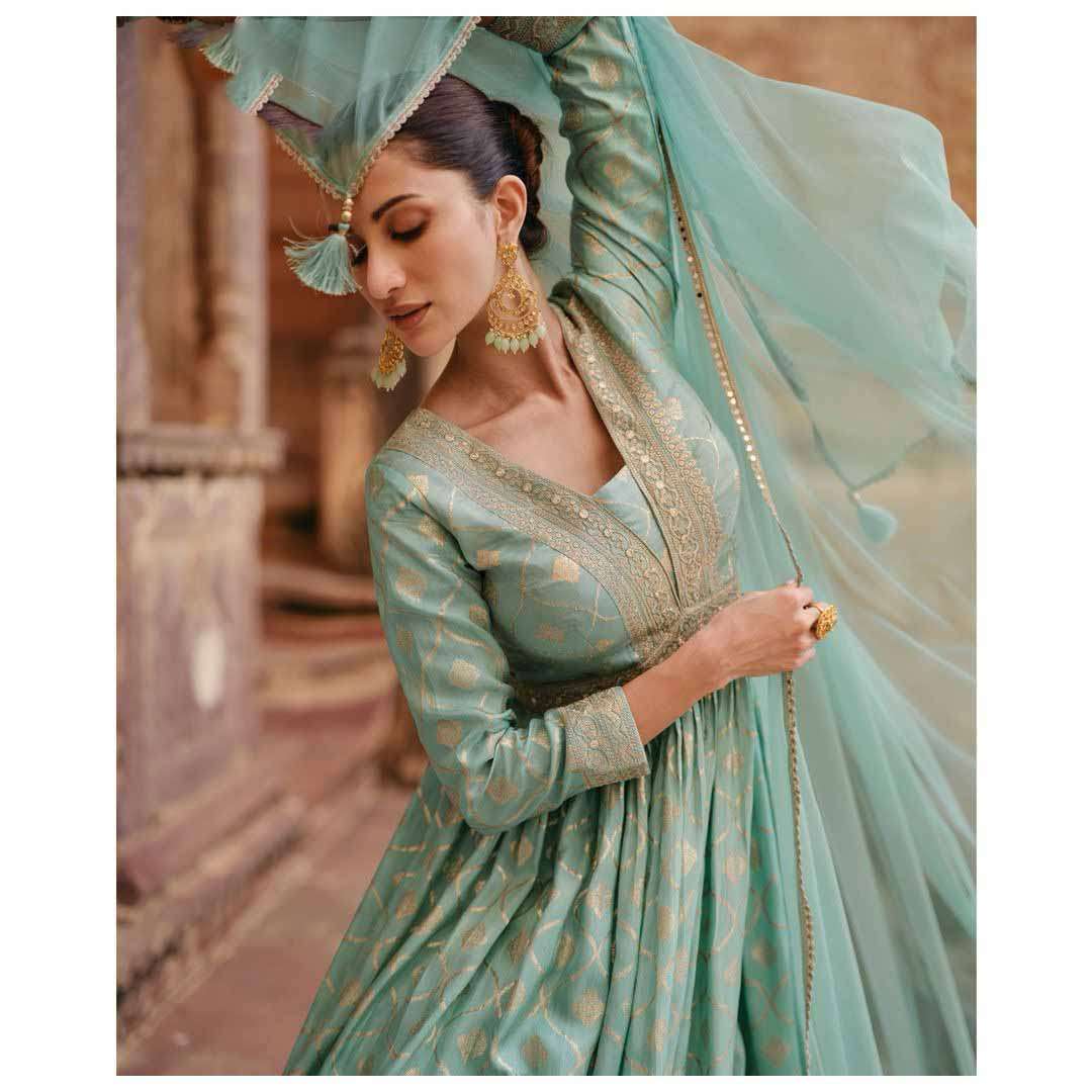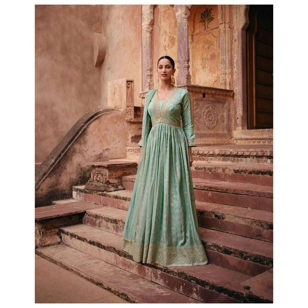 Product Name - jacquard beads sayuri designer viscose jacquard silk with beads & embroidery work on top with palazzo and dupatta