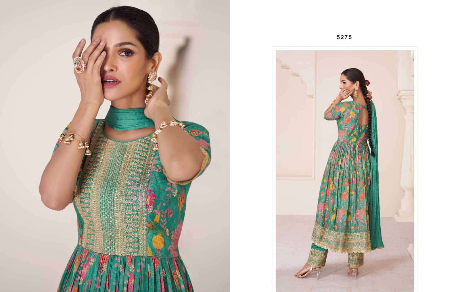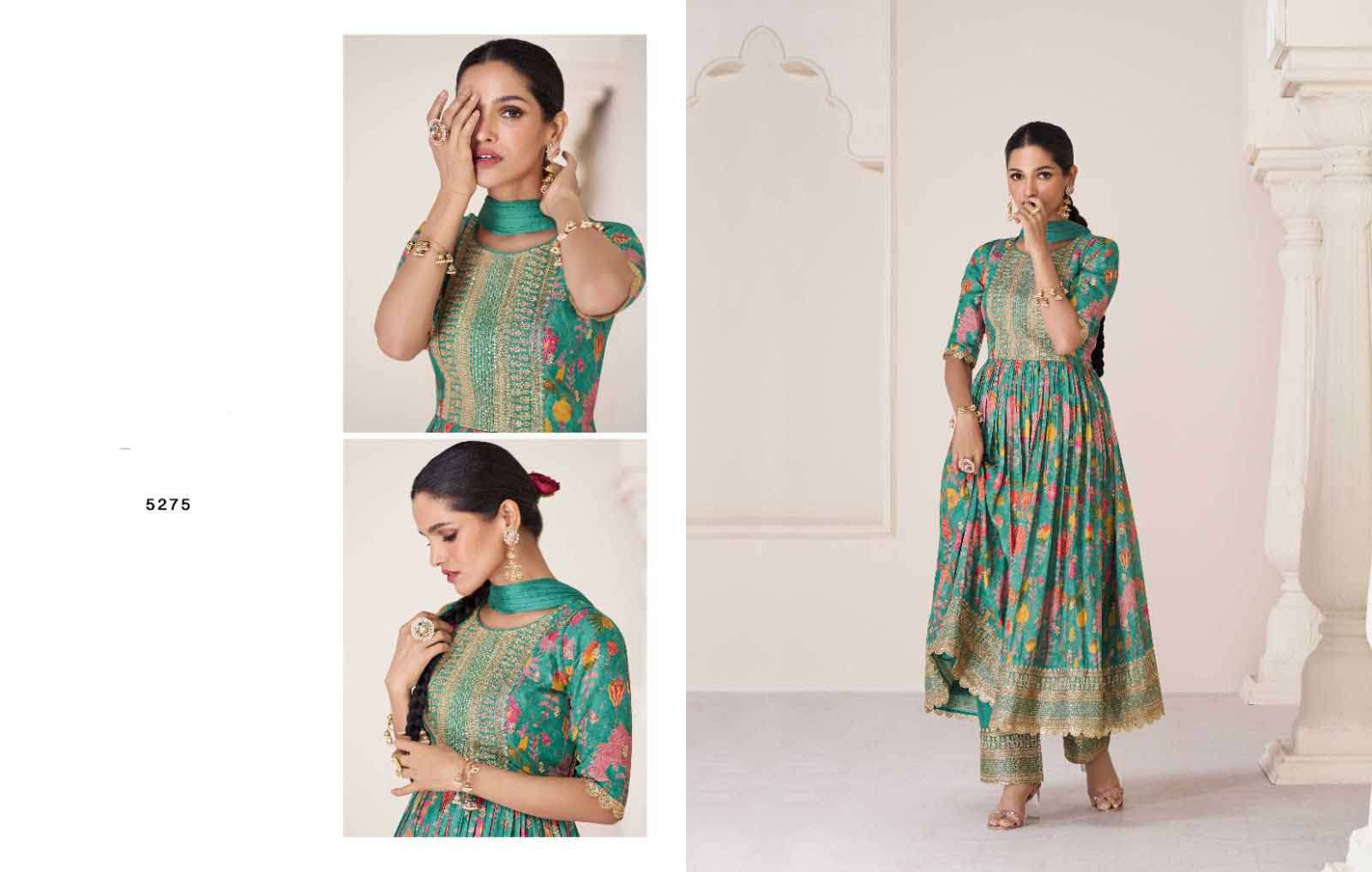 Product Name - sakhi gulkayra real simar silk with heavy embroidery work on Top with palazzo and dupatta