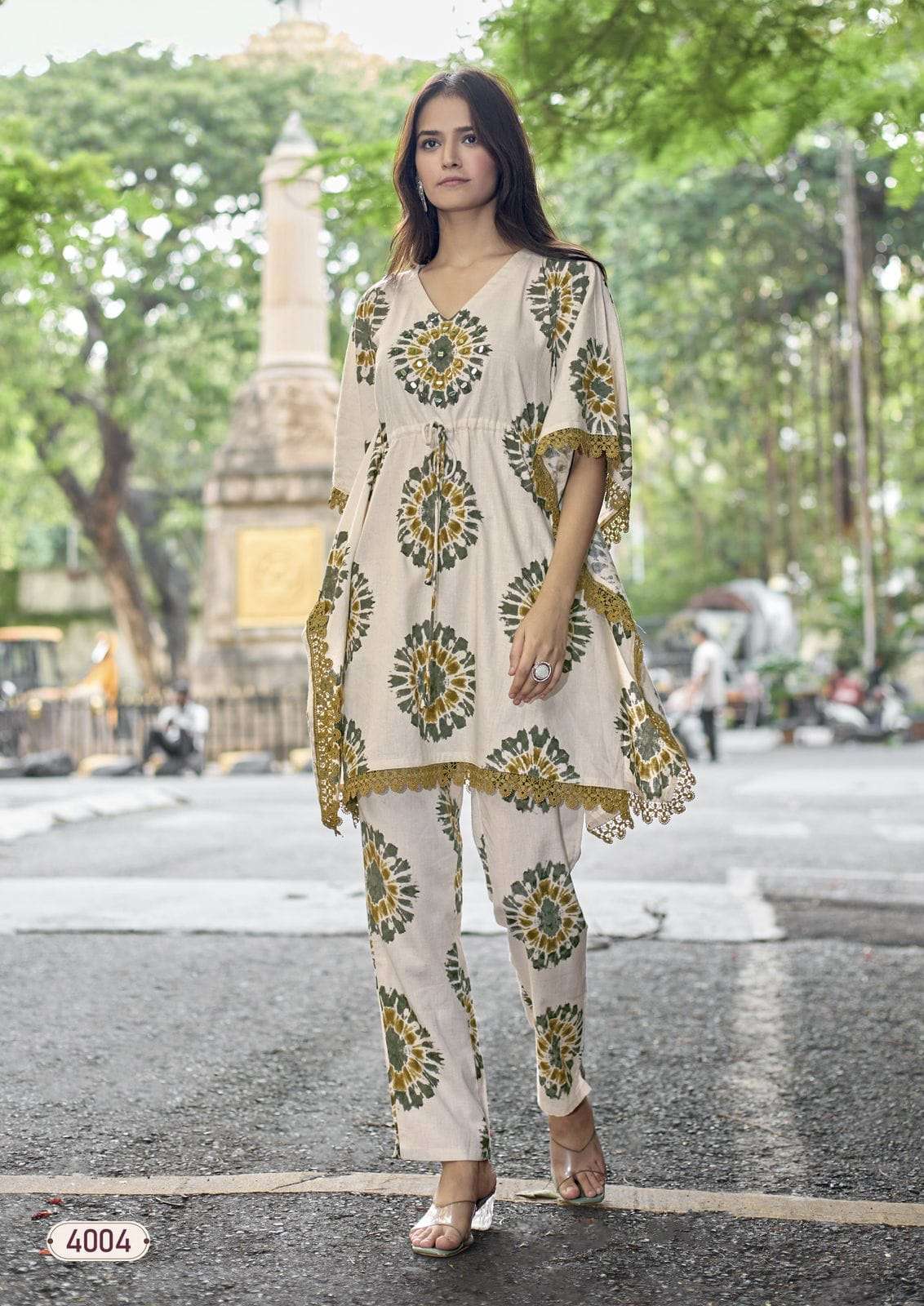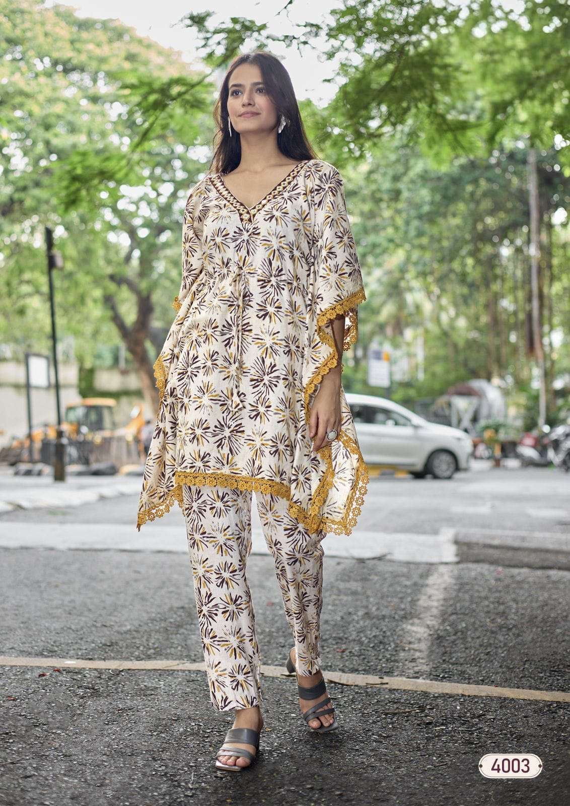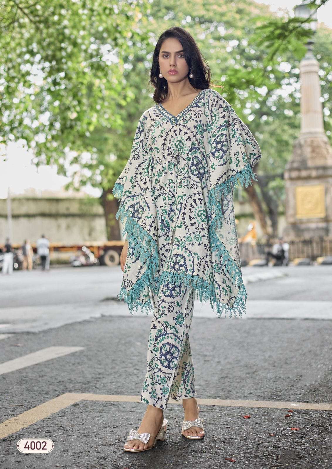 Product Name - Daastaan Shruti DESIGNER WESTERN FUSION WEAR STYLISH KAFTAAN KURTI and PANT SET