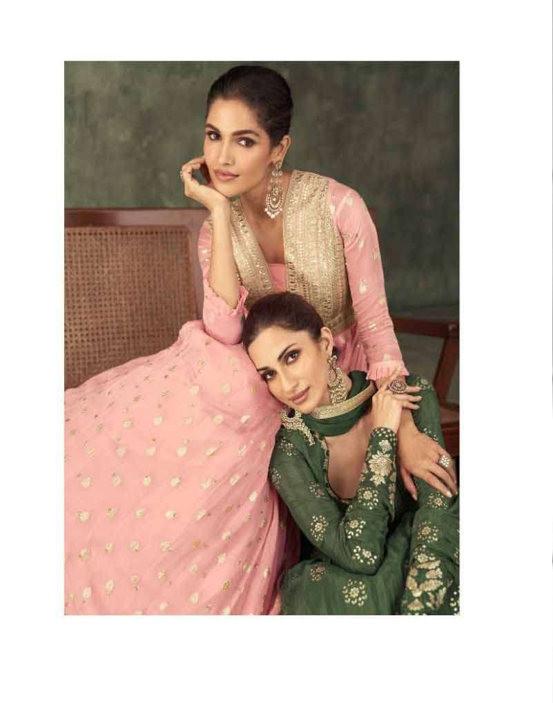 Product Name - sakhi gulkayra real simar silk with heavy embroidery work on Top with palazzo and dupatta