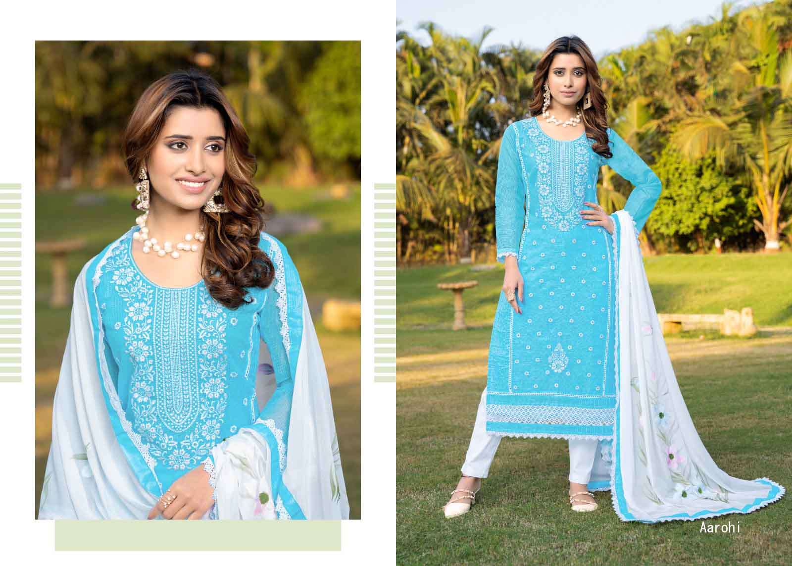 Product Name - safarnama vol 8 kailee by krisha creation cotton schiffli handwork fancy kurti pant with dupatta set