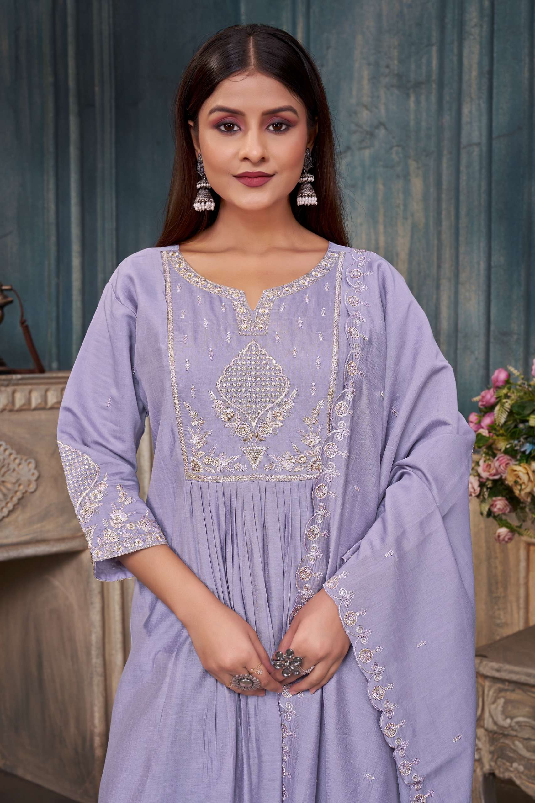 Product Name - anokhi rangoon by krisha creation viscose with embroidery & khatli handwork top with pant dupatta
