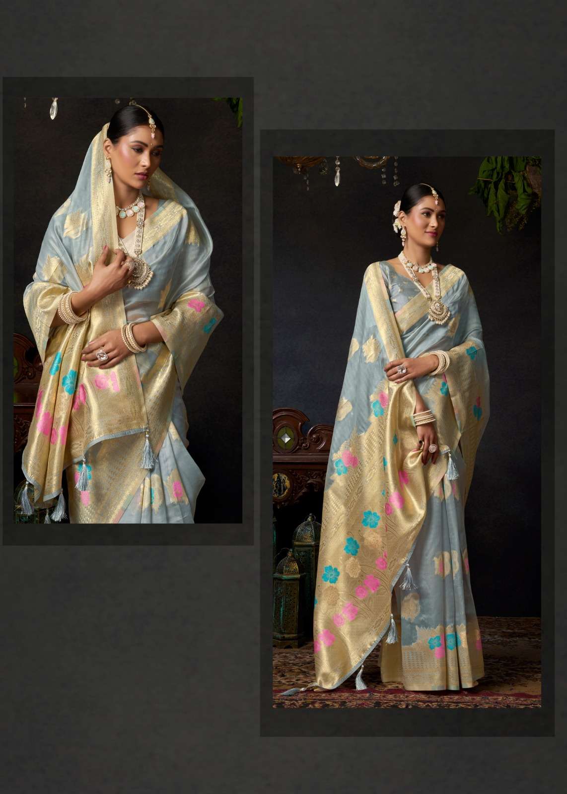 | SAREE : | organza khadi with zhallar |