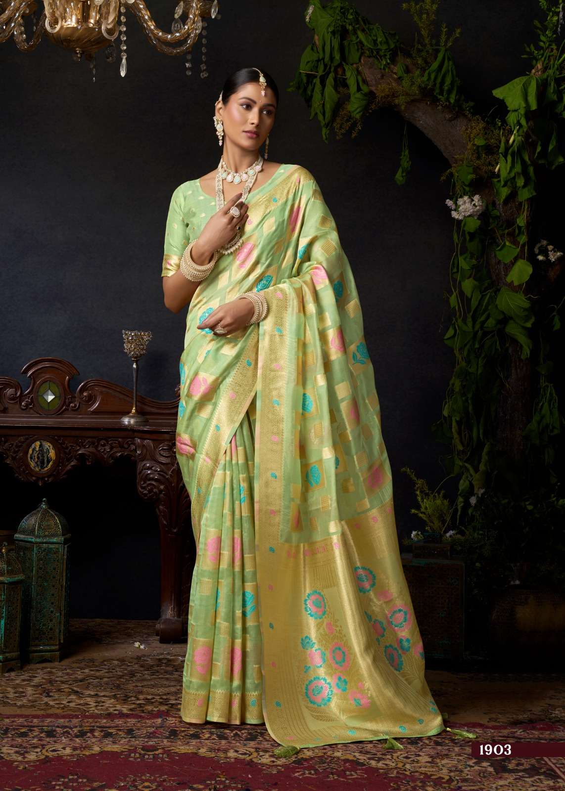 This Organza Khadi Saree is a perfect blend of modern grace and traditional craftsmanship