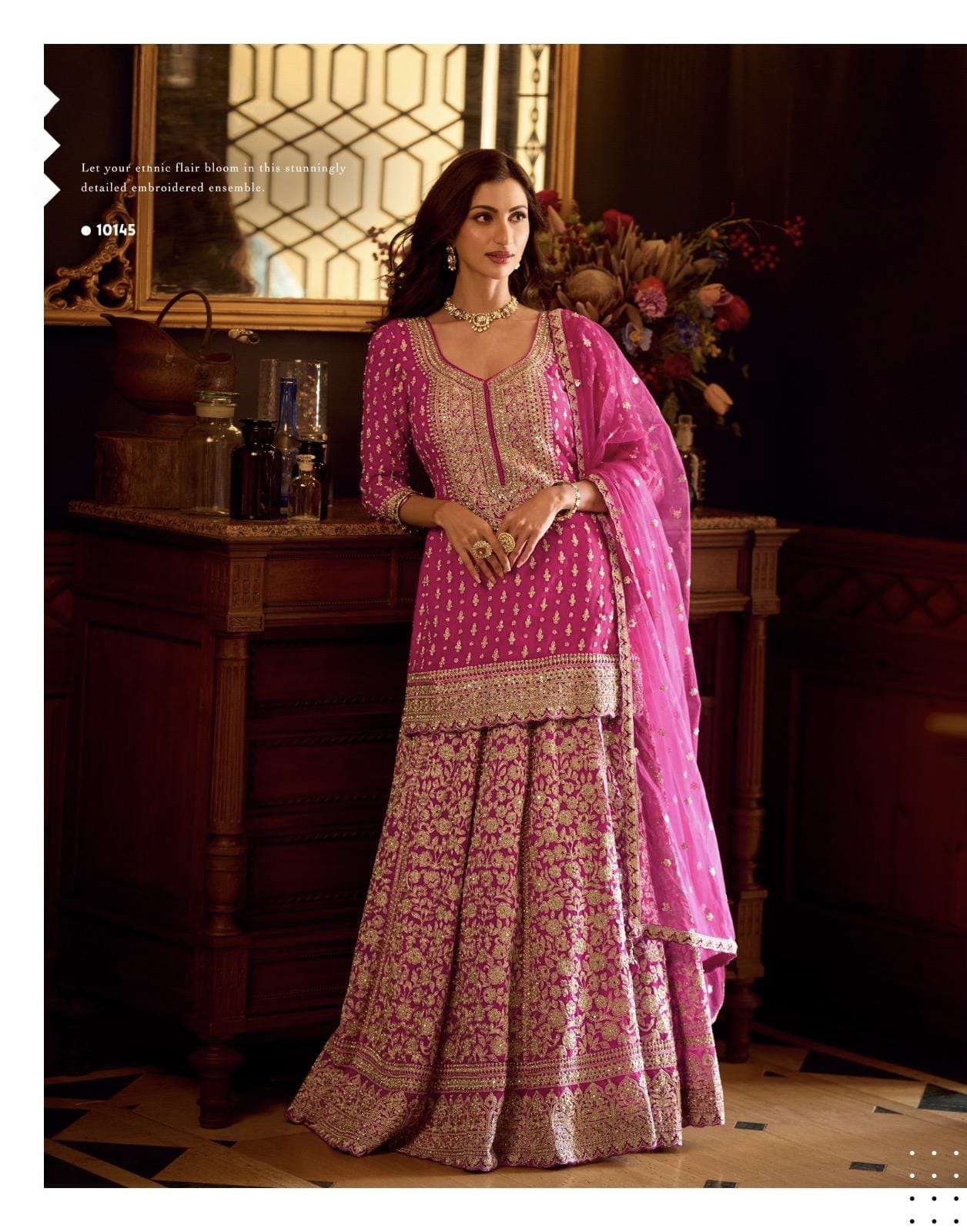 Product Name - Mirror collection 10312 by sayuri designer Elegant Premium Simar Silk Top with Gharara and Dupatta