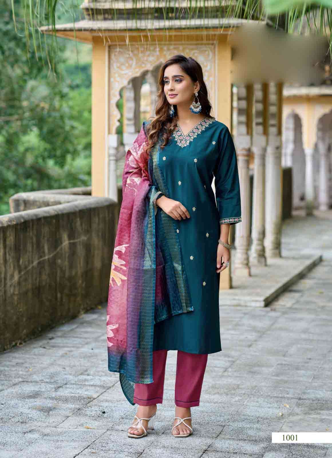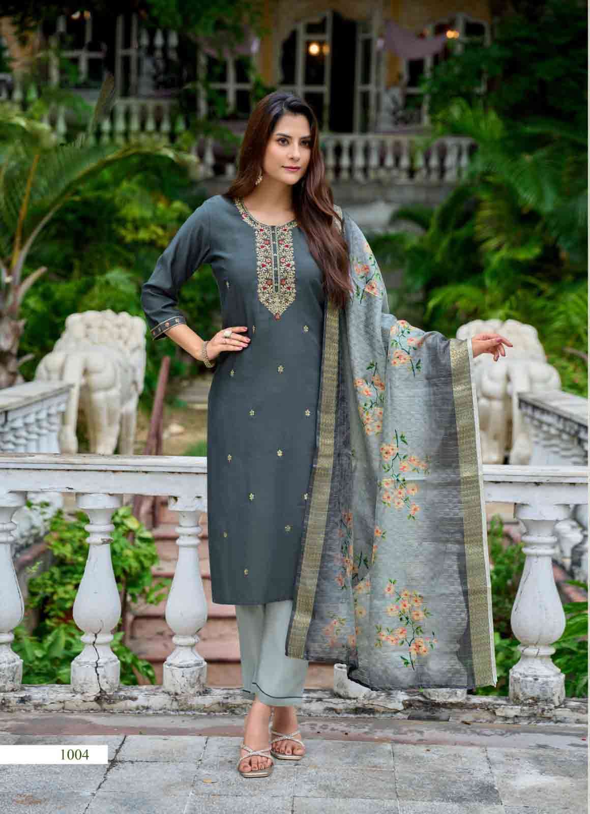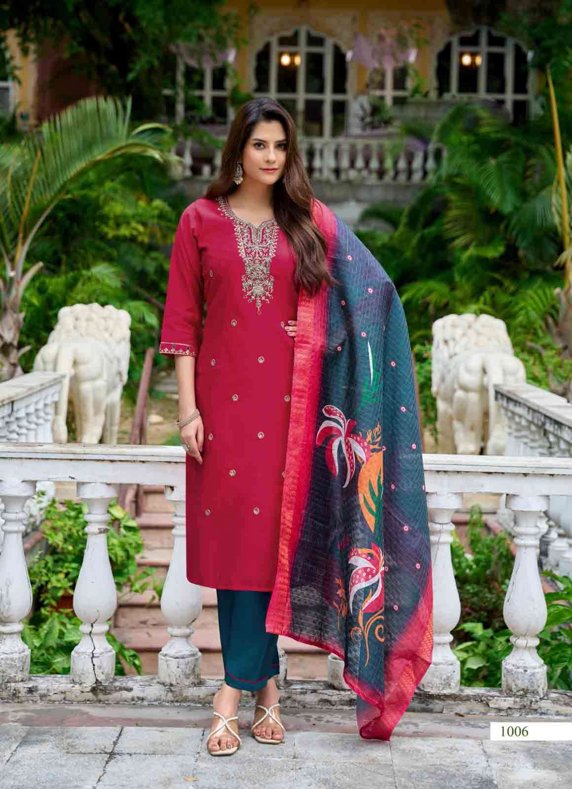Product Name - satarangi vol 1 passion tree by krisha creation straight cut embroidery kurti pant dupatta set