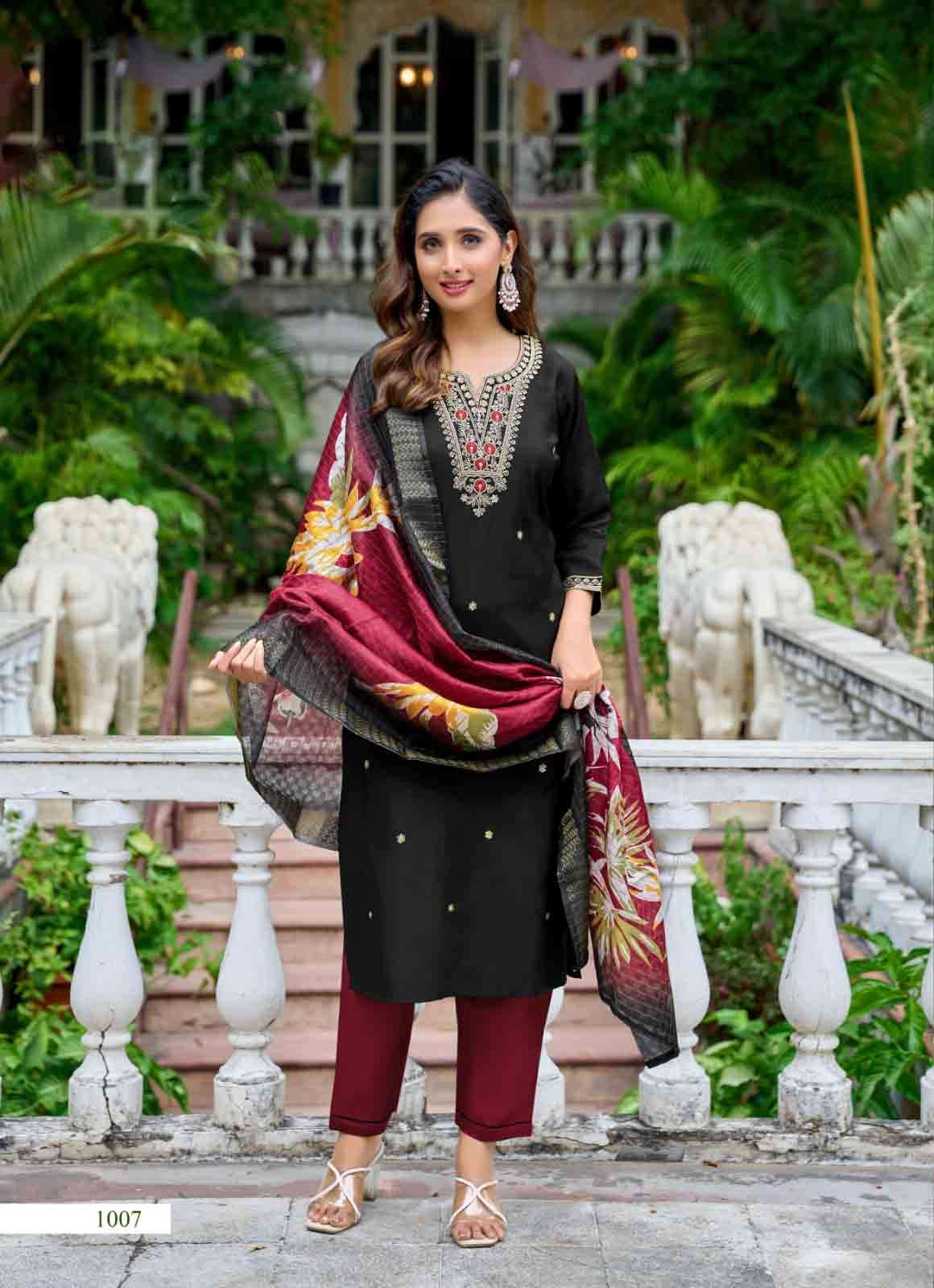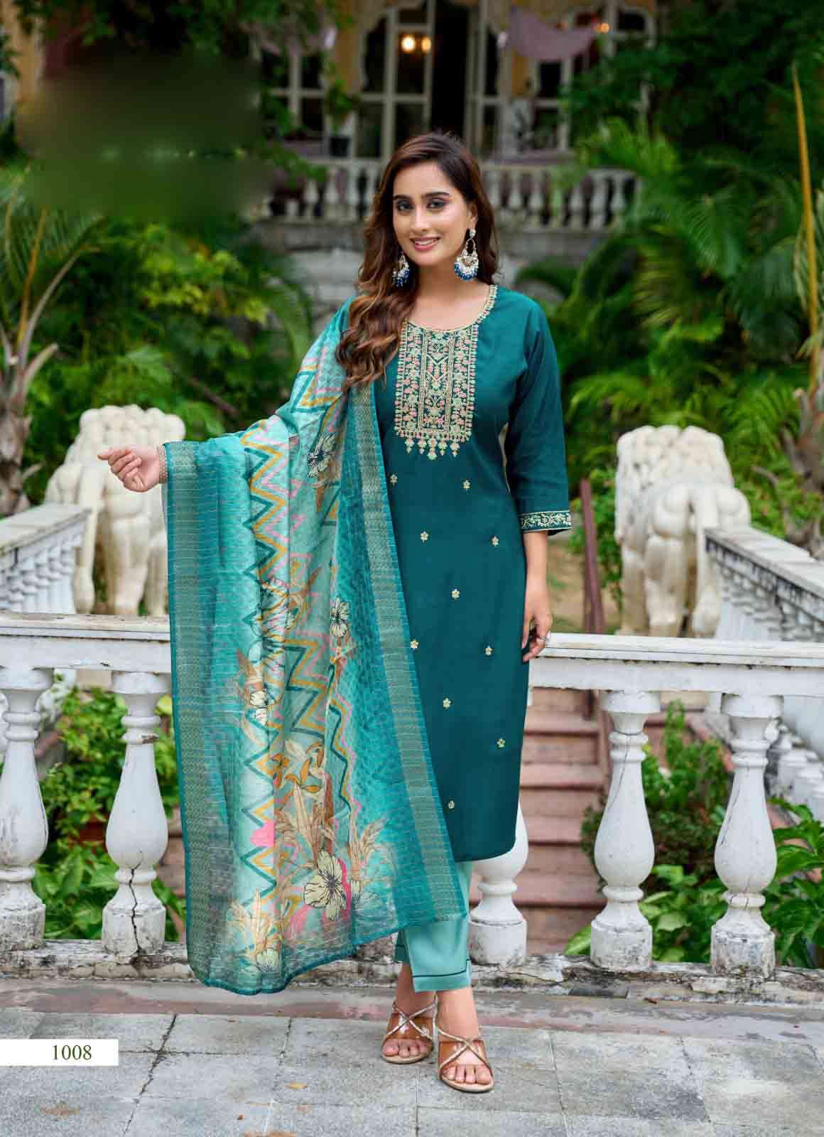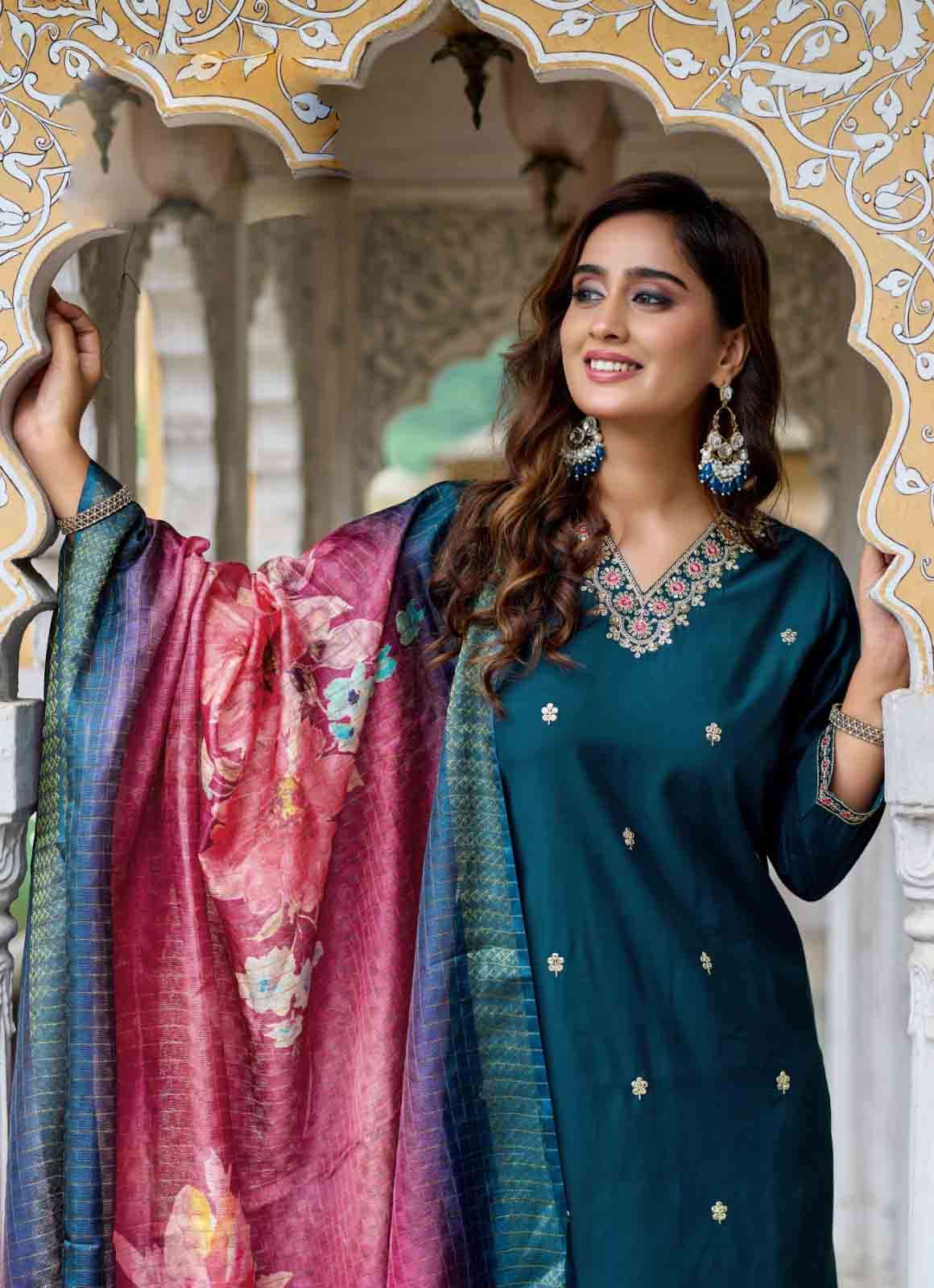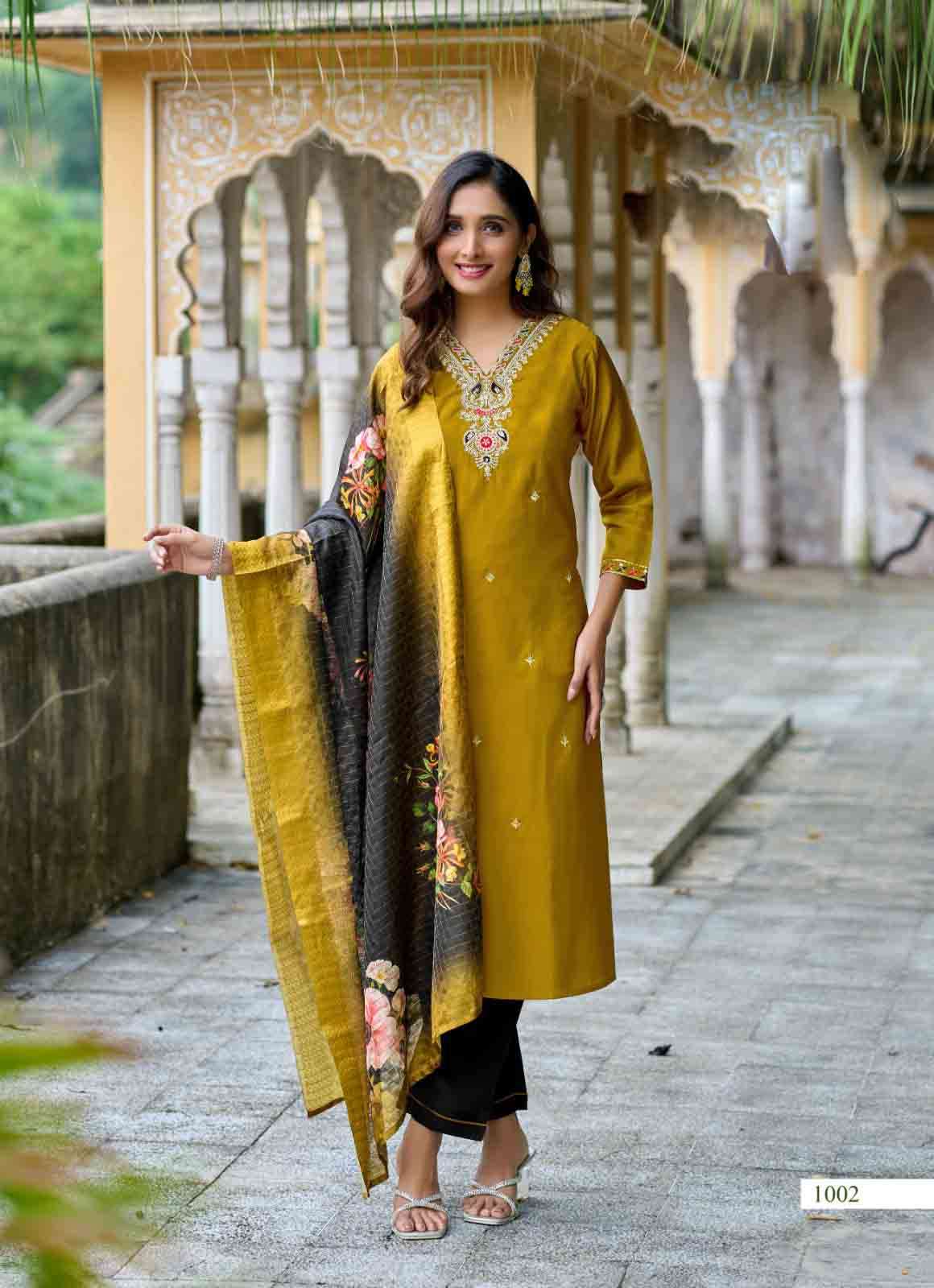 Product Name - satarangi vol 1 passion tree by krisha creation straight cut embroidery kurti pant dupatta set