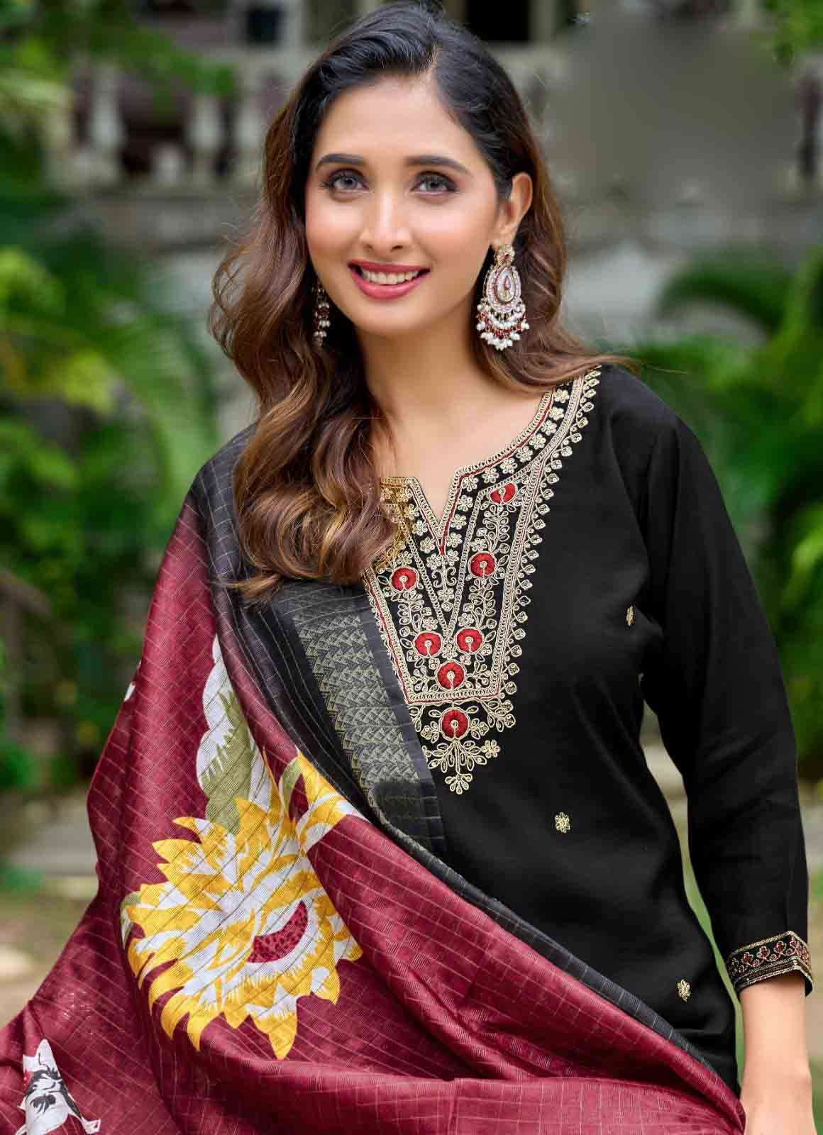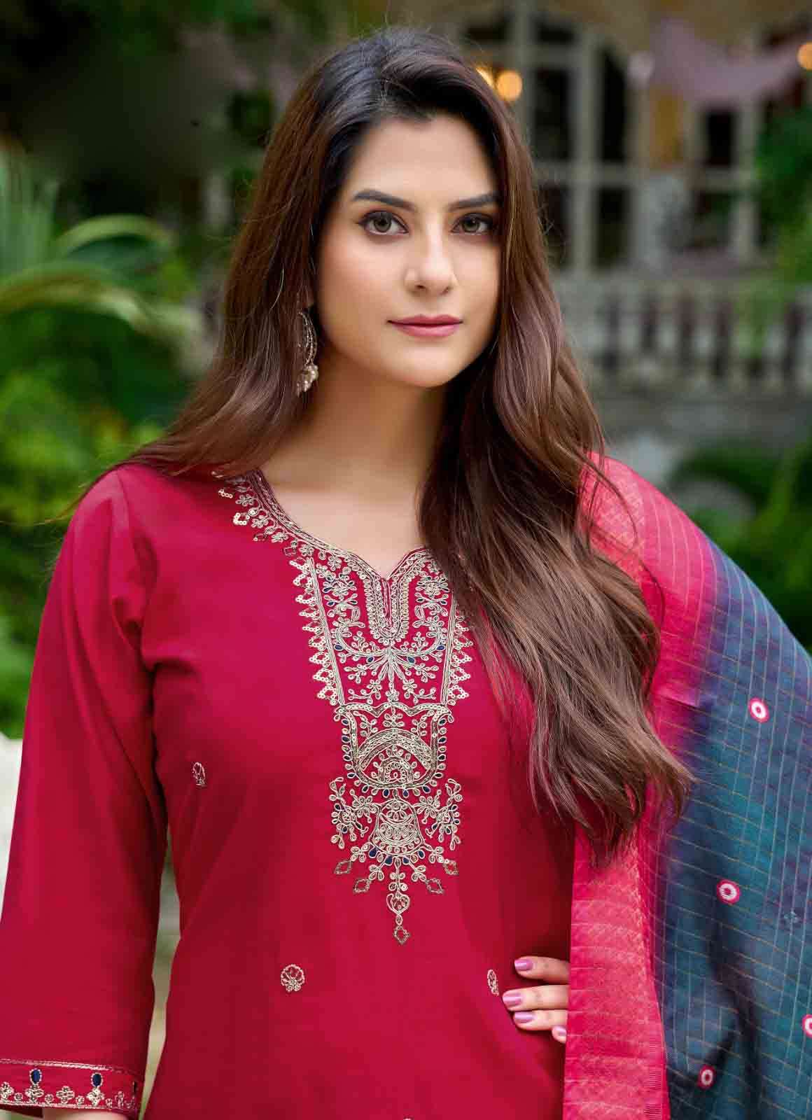 Product Name - anokhi rangoon by krisha creation viscose with embroidery & khatli handwork top with pant dupatta