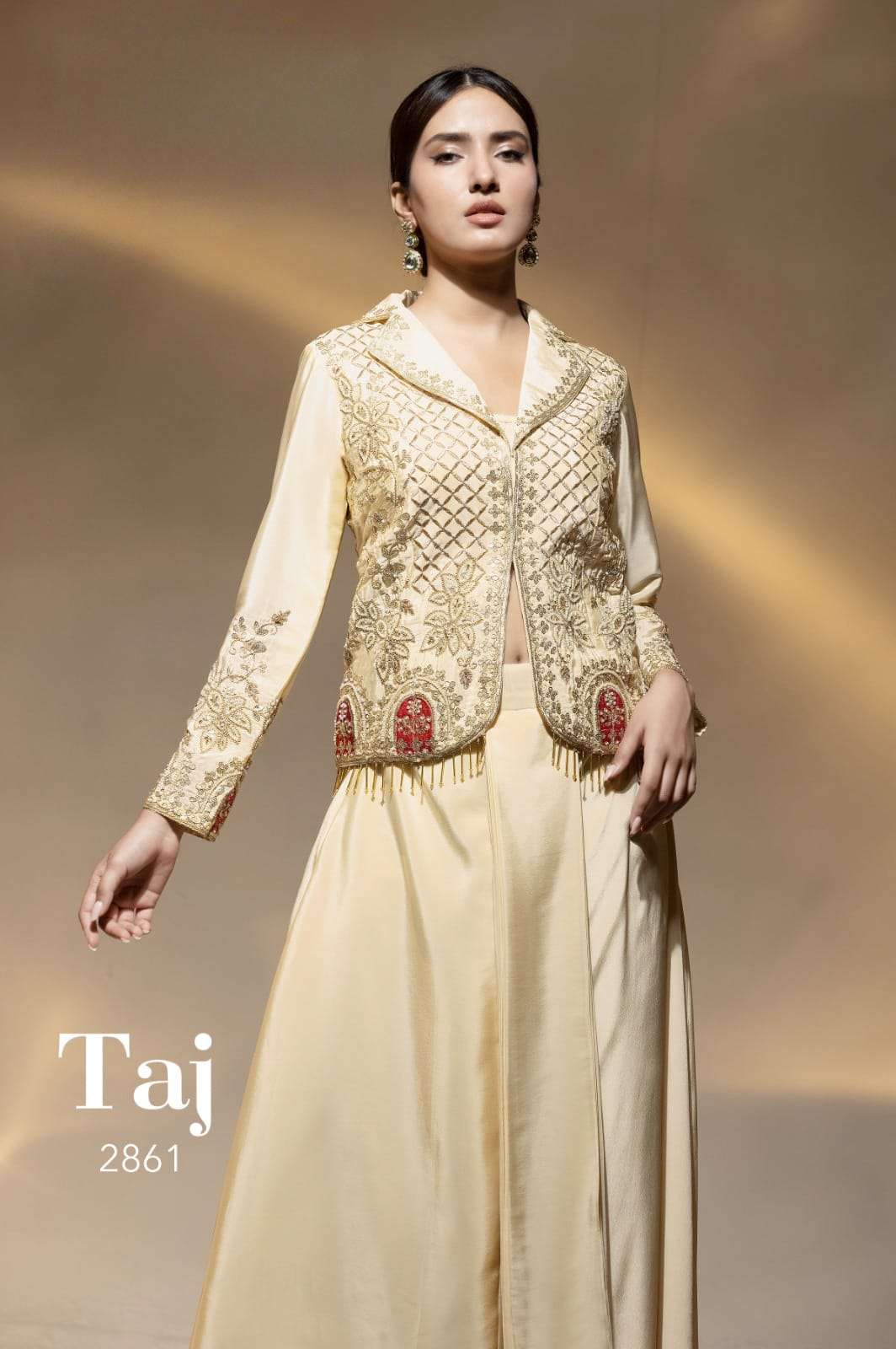 Product Name - jacquard beads sayuri designer viscose jacquard silk with beads & embroidery work on top with palazzo and dupatta