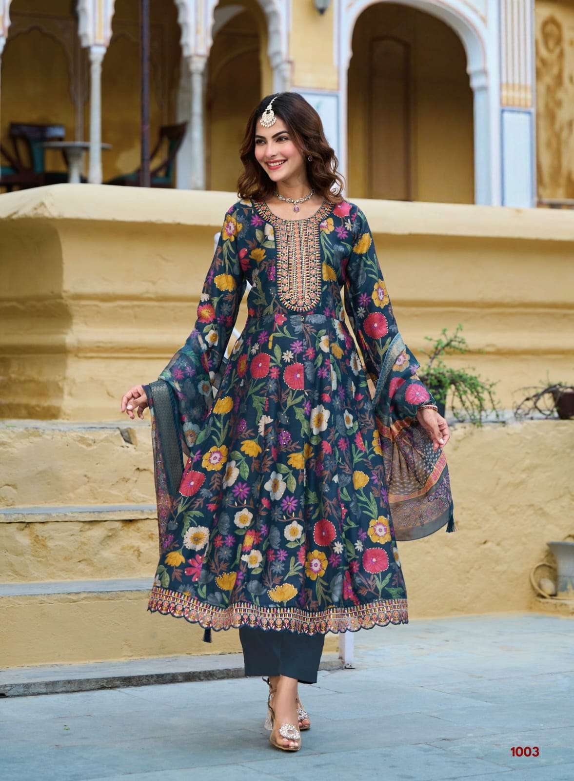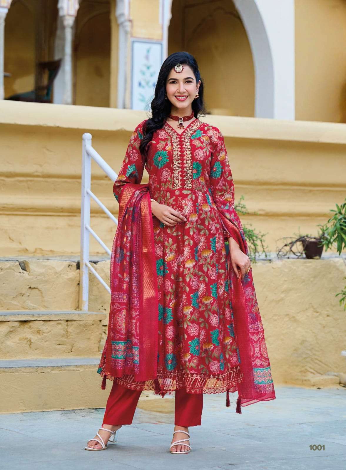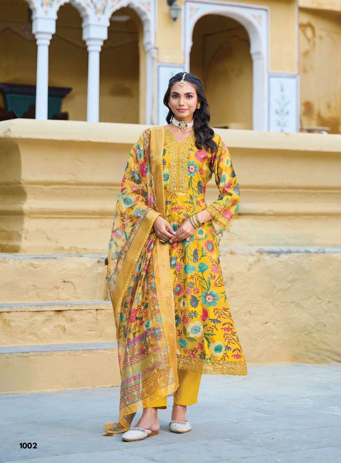 | BOTTOM : | vertican print with embroidery work organza print jacquard dupptta |