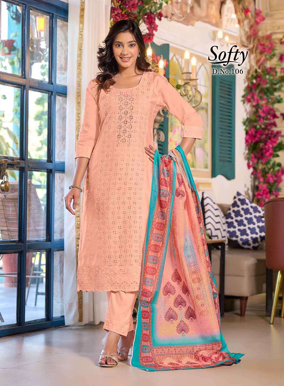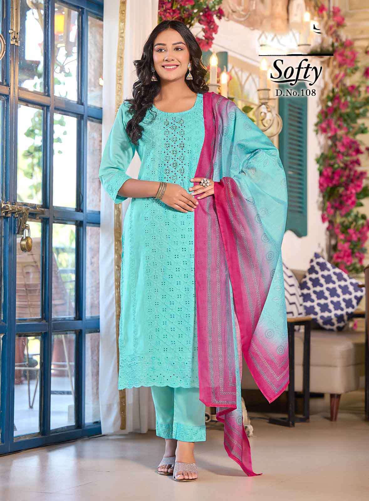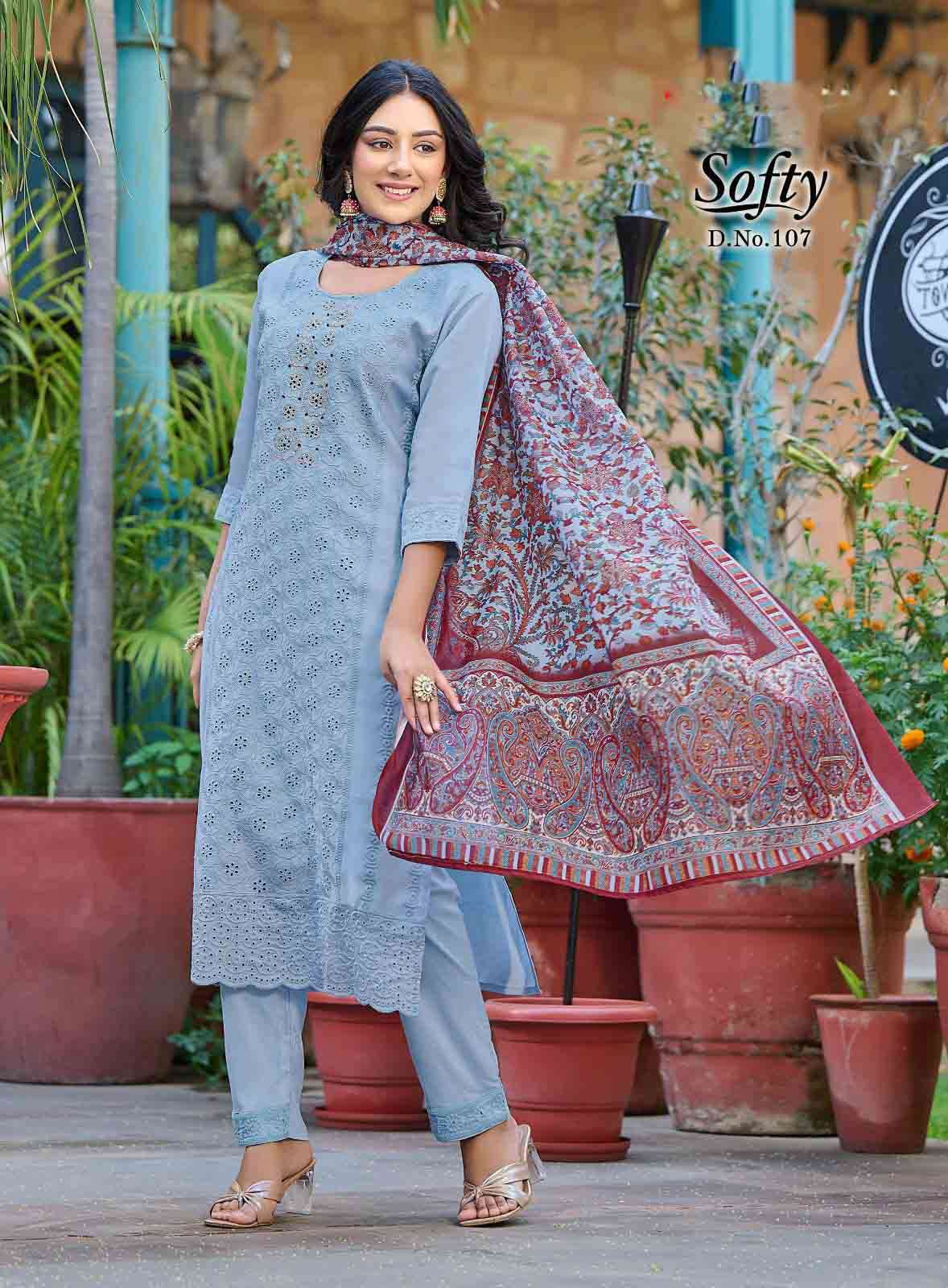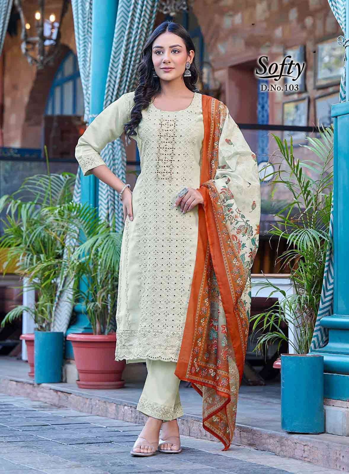 Product Name - safarnama vol 8 kailee by krisha creation cotton schiffli handwork fancy kurti pant with dupatta set