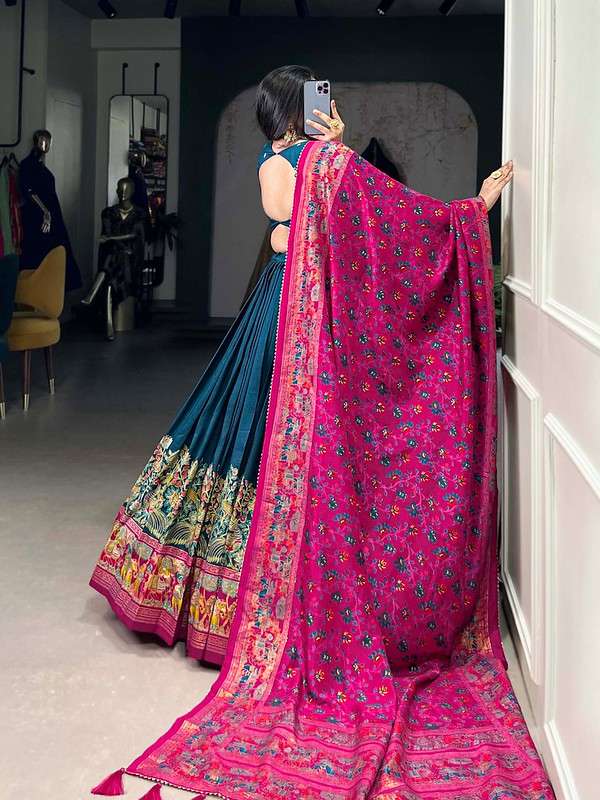 Dupatta :- Tussar Silk and Printed And Foil Work With Gotta Patti Lace Border also comes with tassels