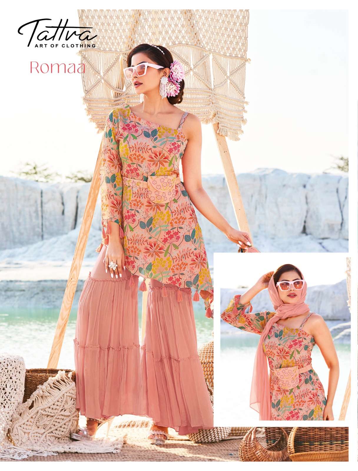 | TOP : | pure viscose chinon print (work- designer cutdana & moti handwork.) |