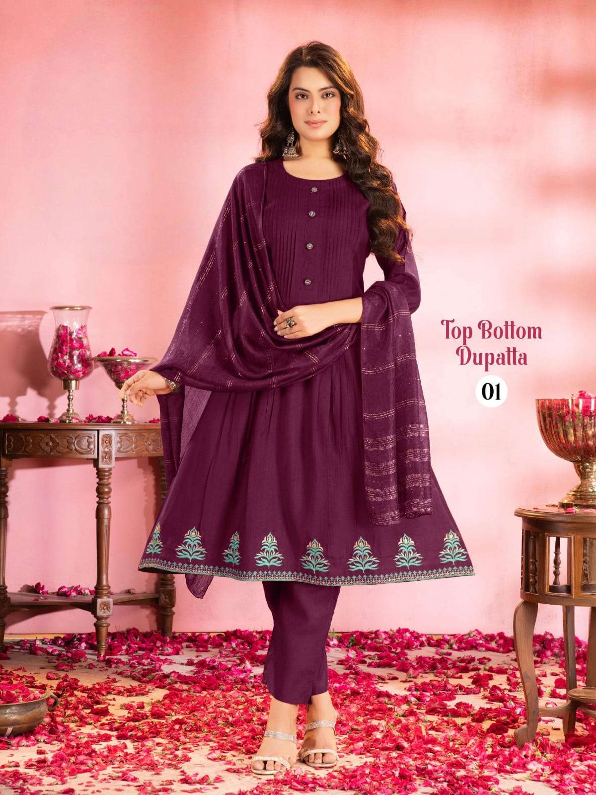 Product Name - anokhi rangoon by krisha creation viscose with embroidery & khatli handwork top with pant dupatta