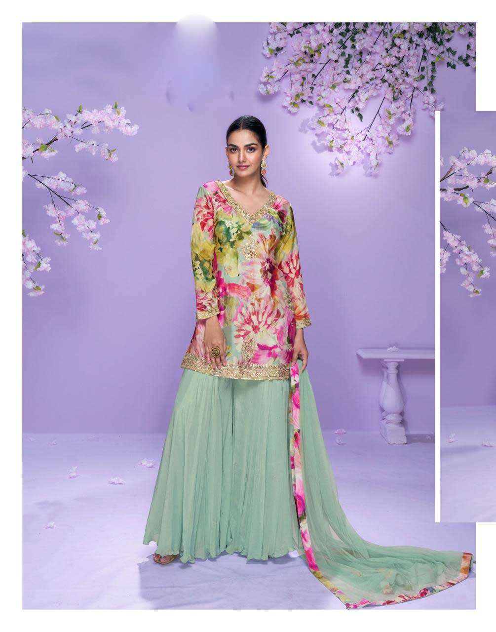 Product Name - miiror collection 10311 by sayuri designer premium chinon silk top with sharara and dupatta