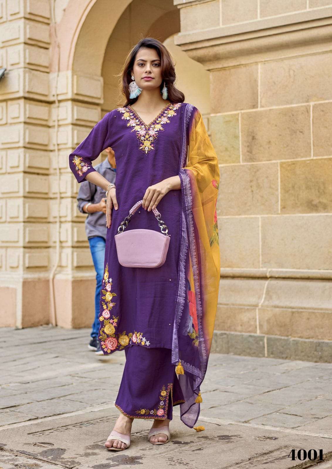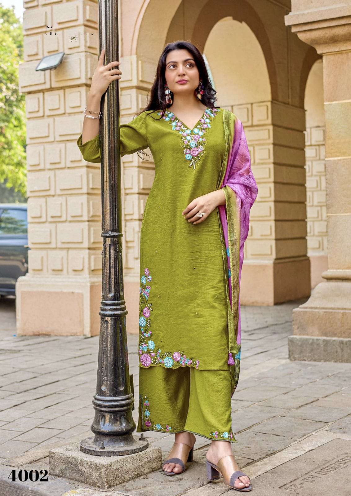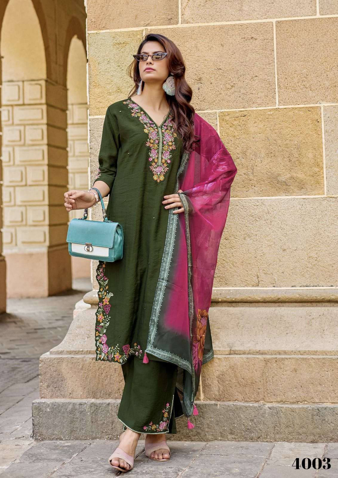 Product Name - maggie aanchi by krisha crystal silk embroidery kurti pant with Jacquard dupatta set