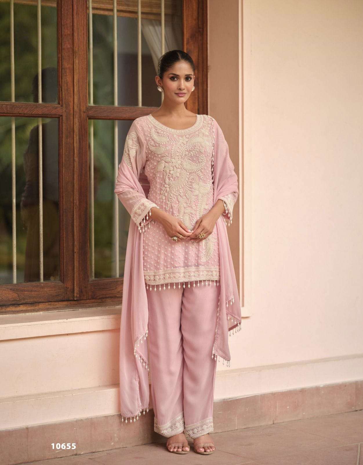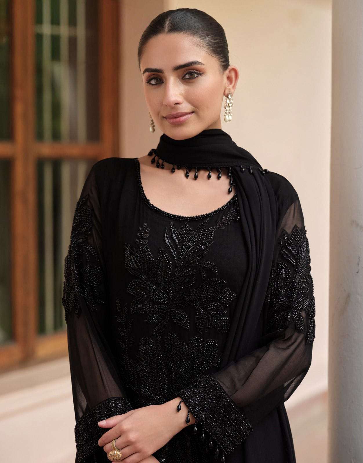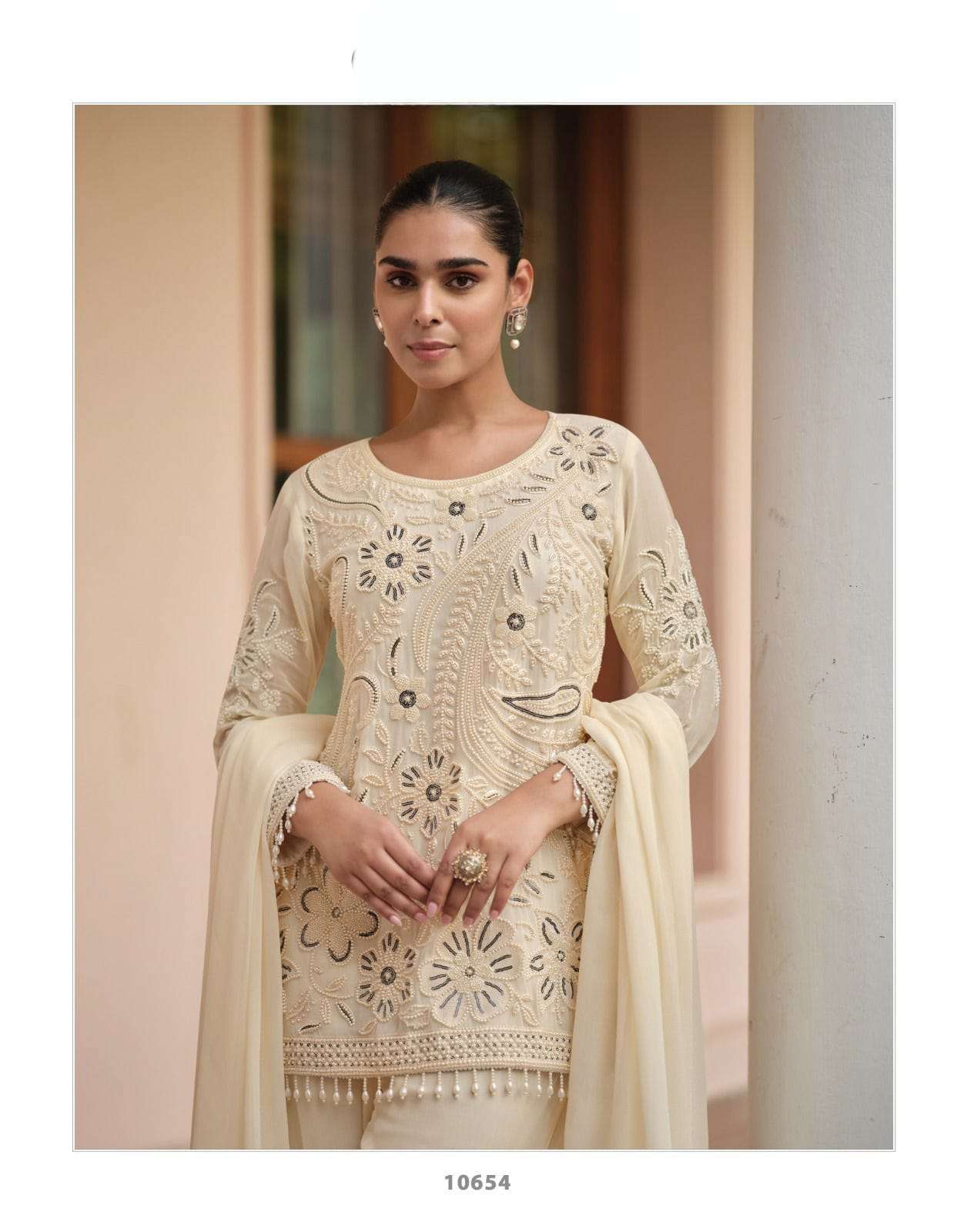 Product Name - beads collection by sayuri premium chinon silk trendy pakistani style beads work on top with pant dupatta