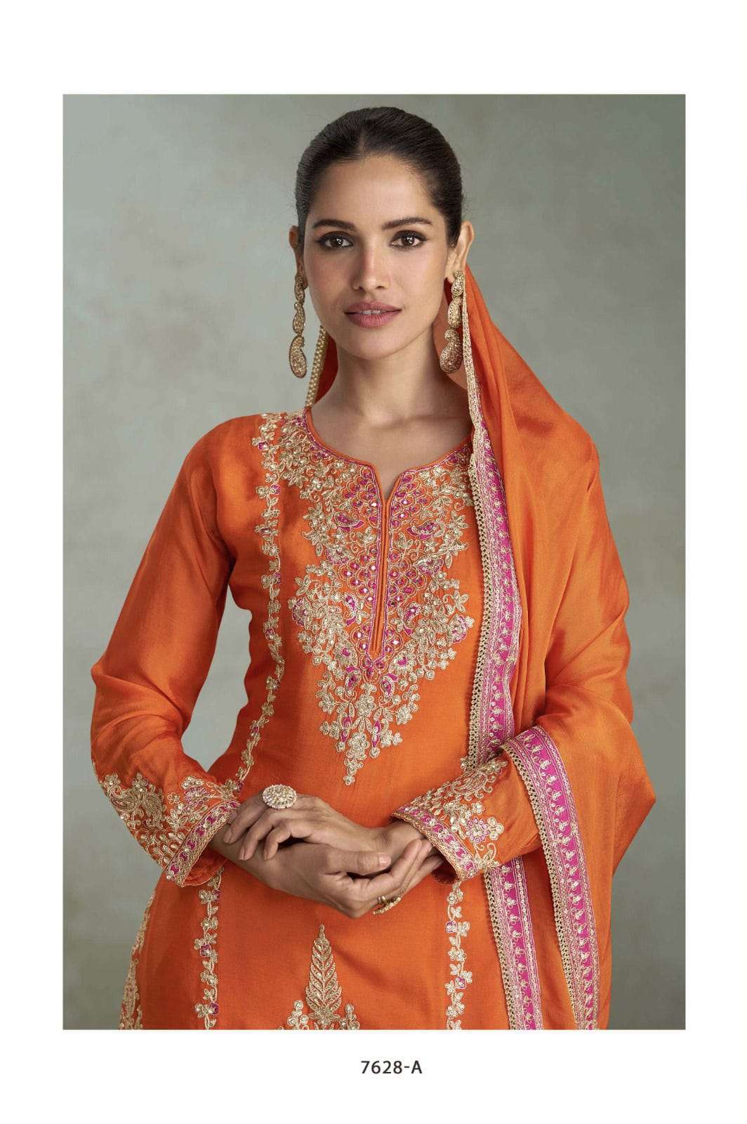 Product Name - sakhi gulkayra real simar silk with heavy embroidery work on Top with palazzo and dupatta