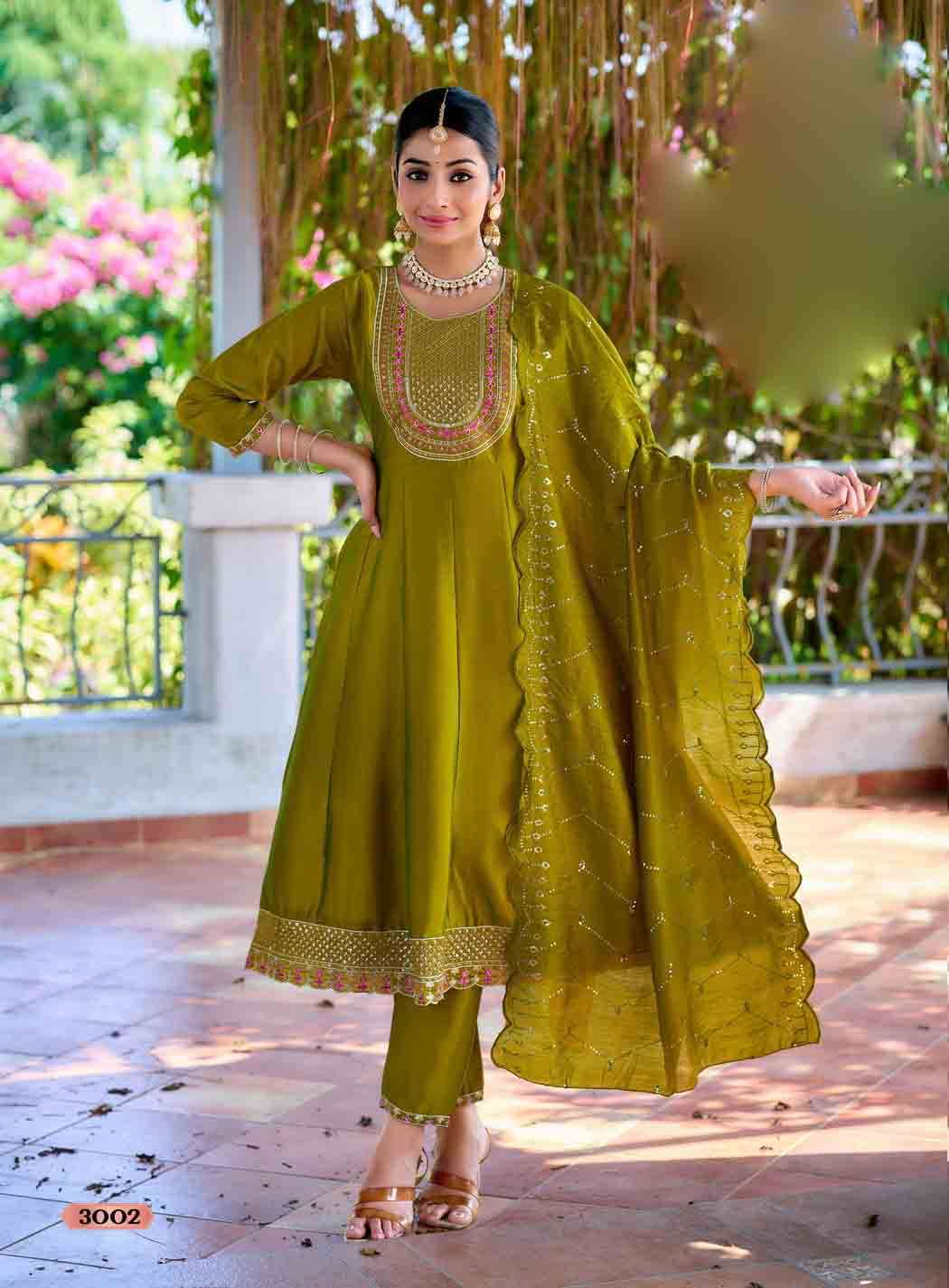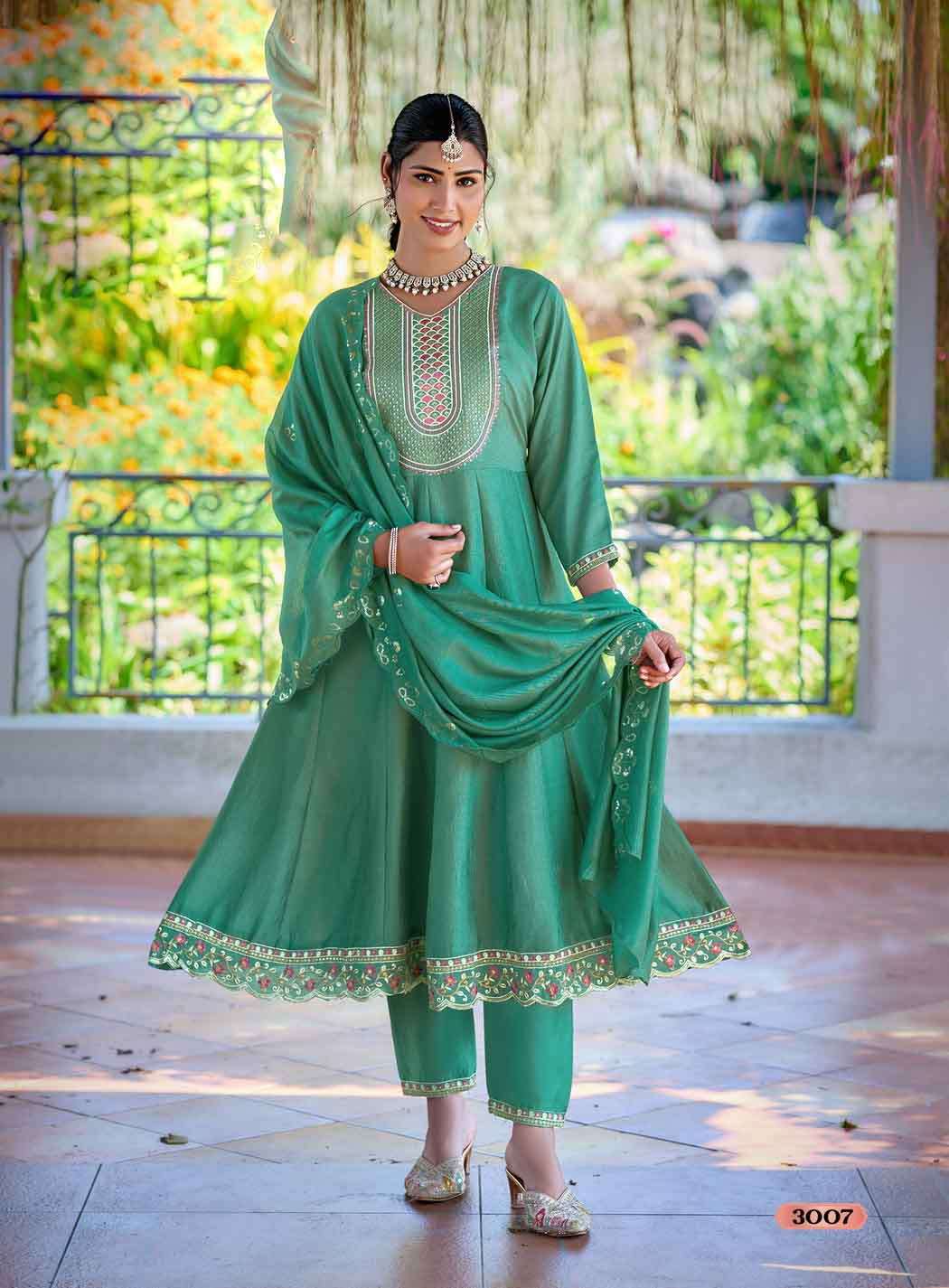 🧥Pattern: ANARKALI KURTI WITH PANT & DUPATTA