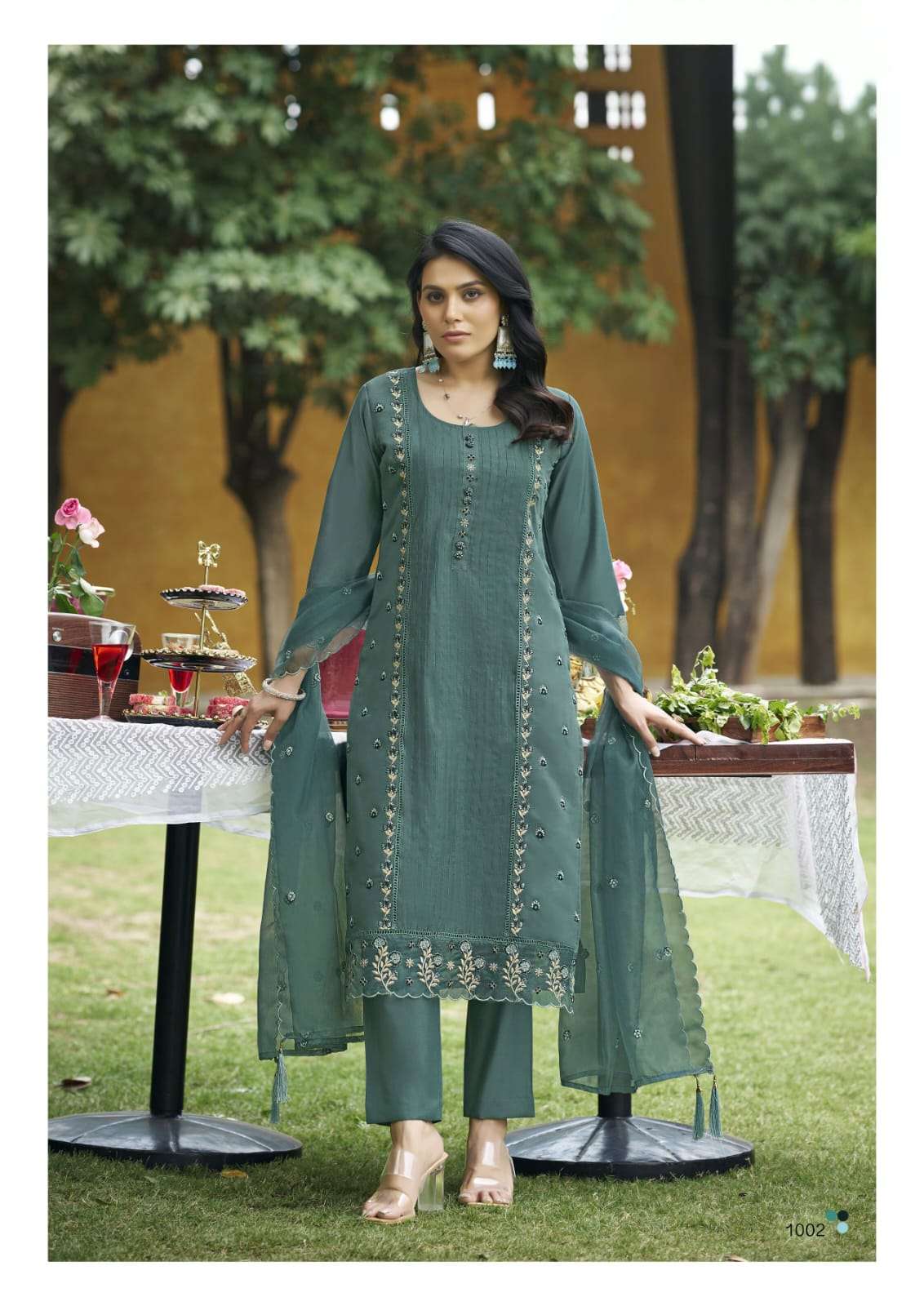 🧣: primium pure organza thread work with latkan