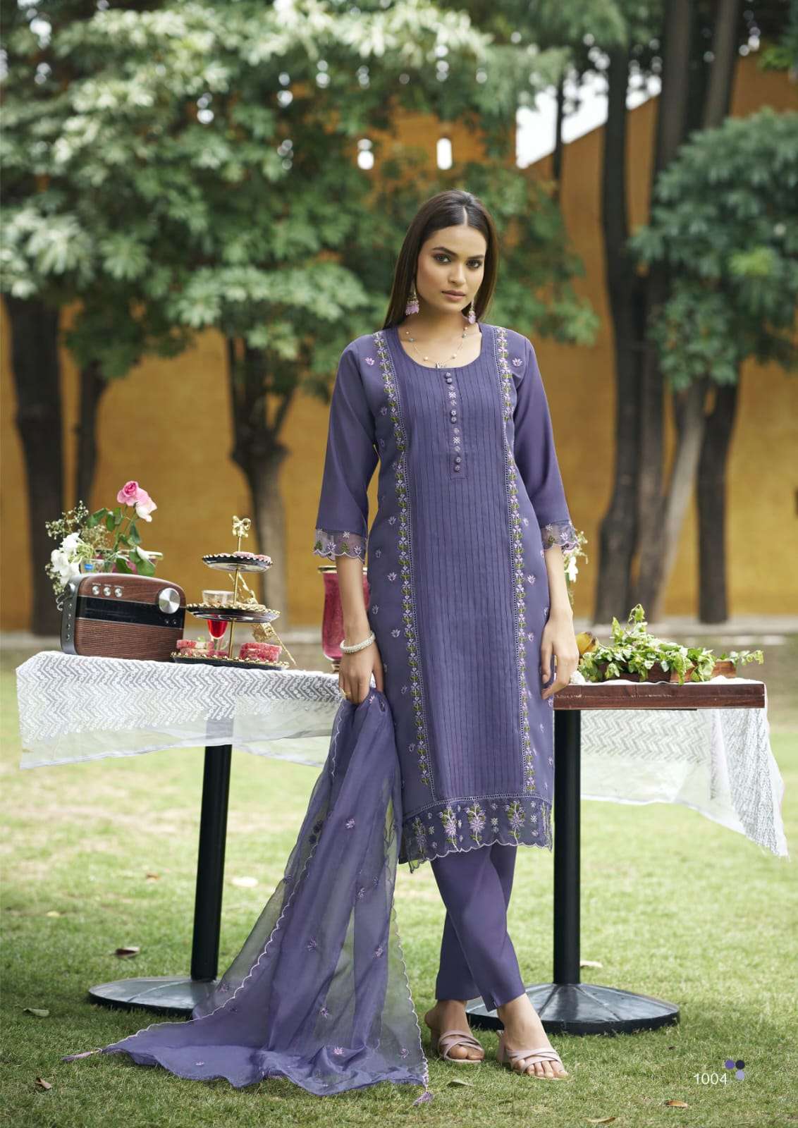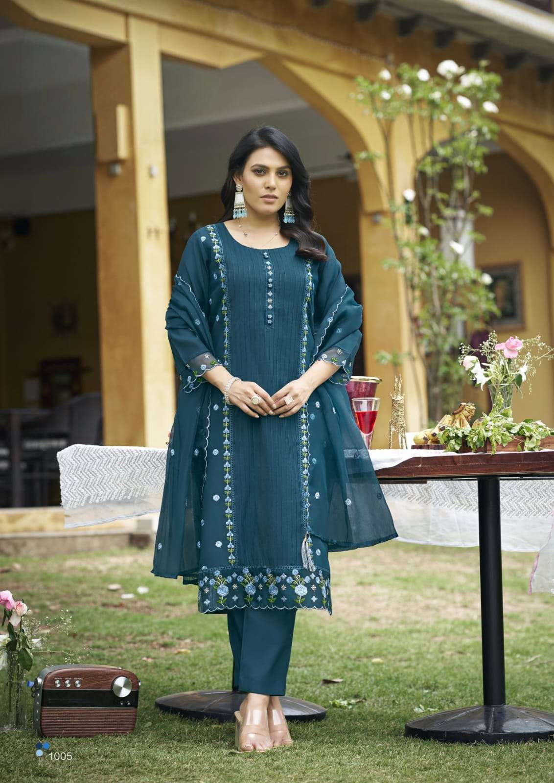 Product Name - satarangi vol 1 passion tree by krisha creation straight cut embroidery kurti pant dupatta set